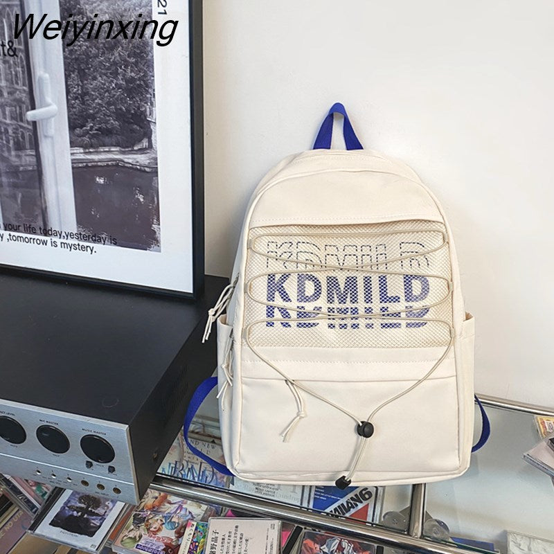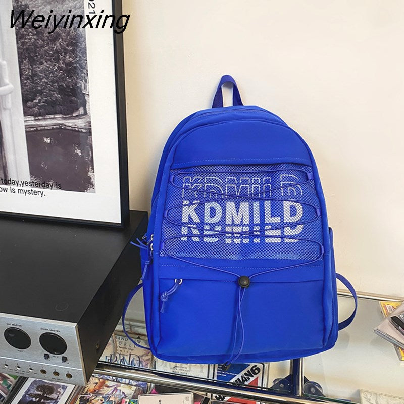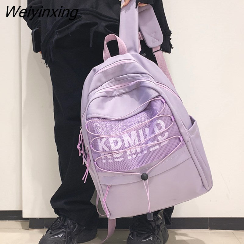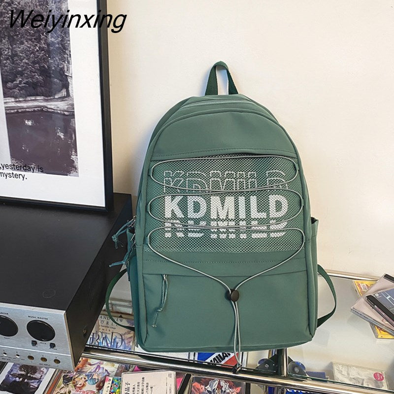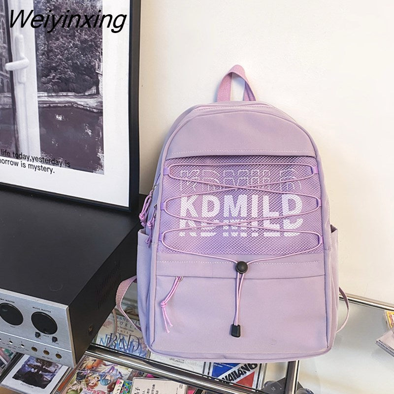 Weiyinxing Letter Printing Waterproof Nylon Backpack Women High Quality Net Travel Bag Cross Rope Laptop Backpack College Schoolbag