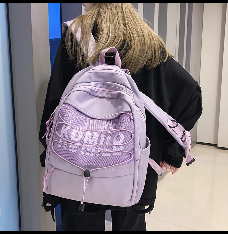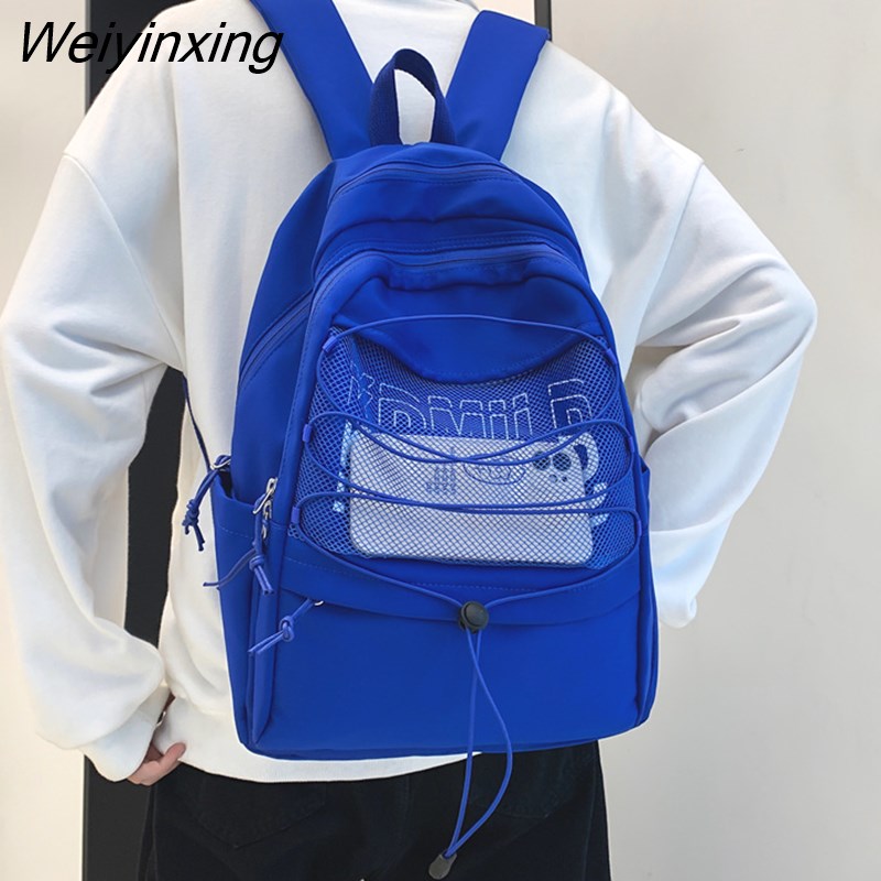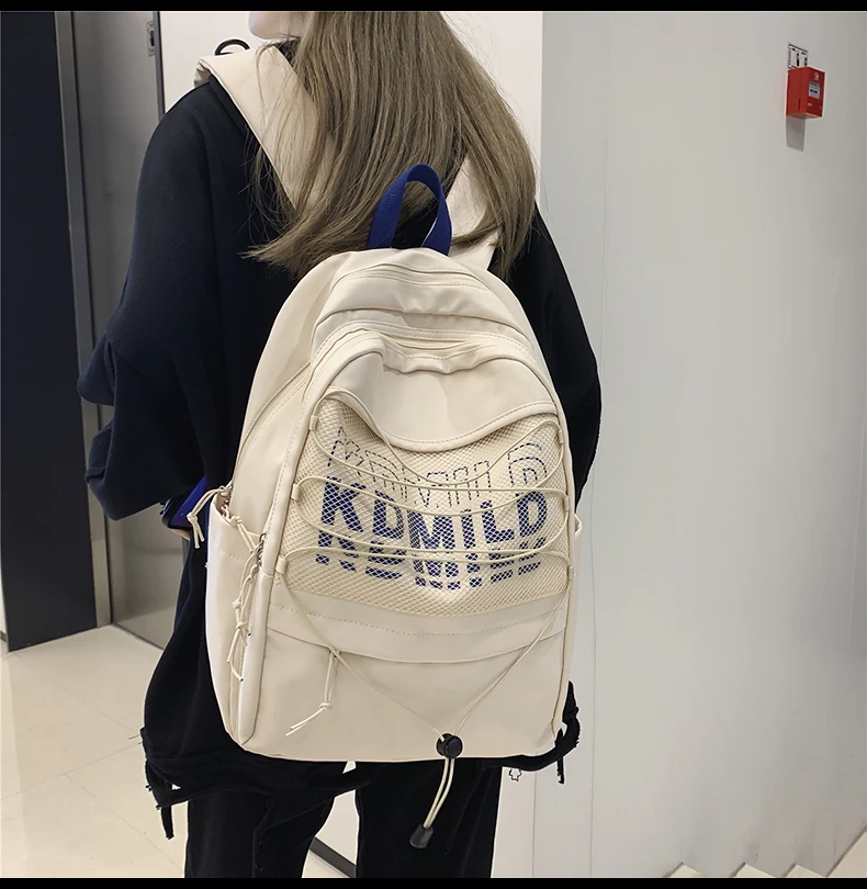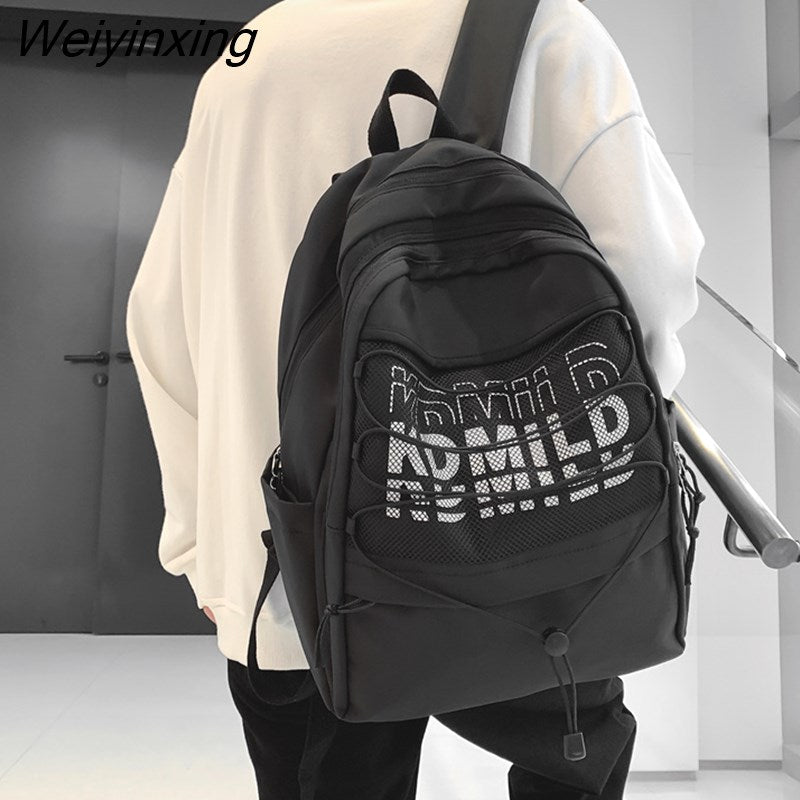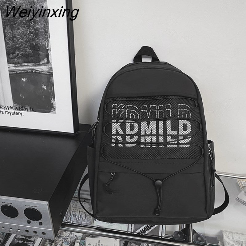 Weiyinxing Letter Printing Waterproof Nylon Backpack Women High Quality Net Travel Bag Cross Rope Laptop Backpack College Schoolbag