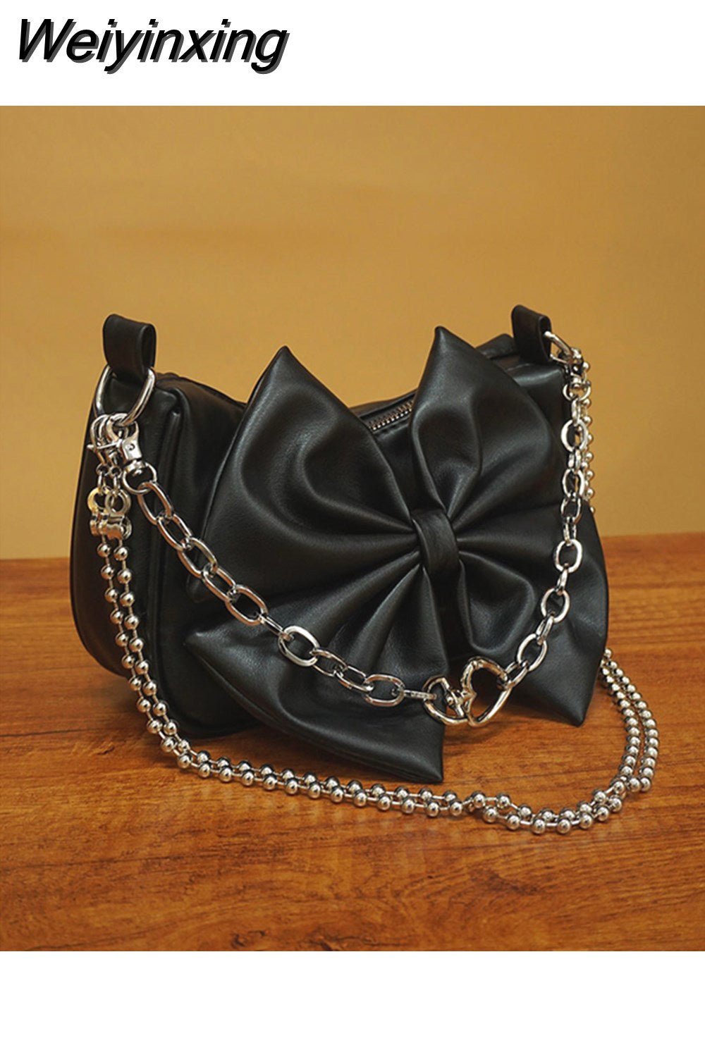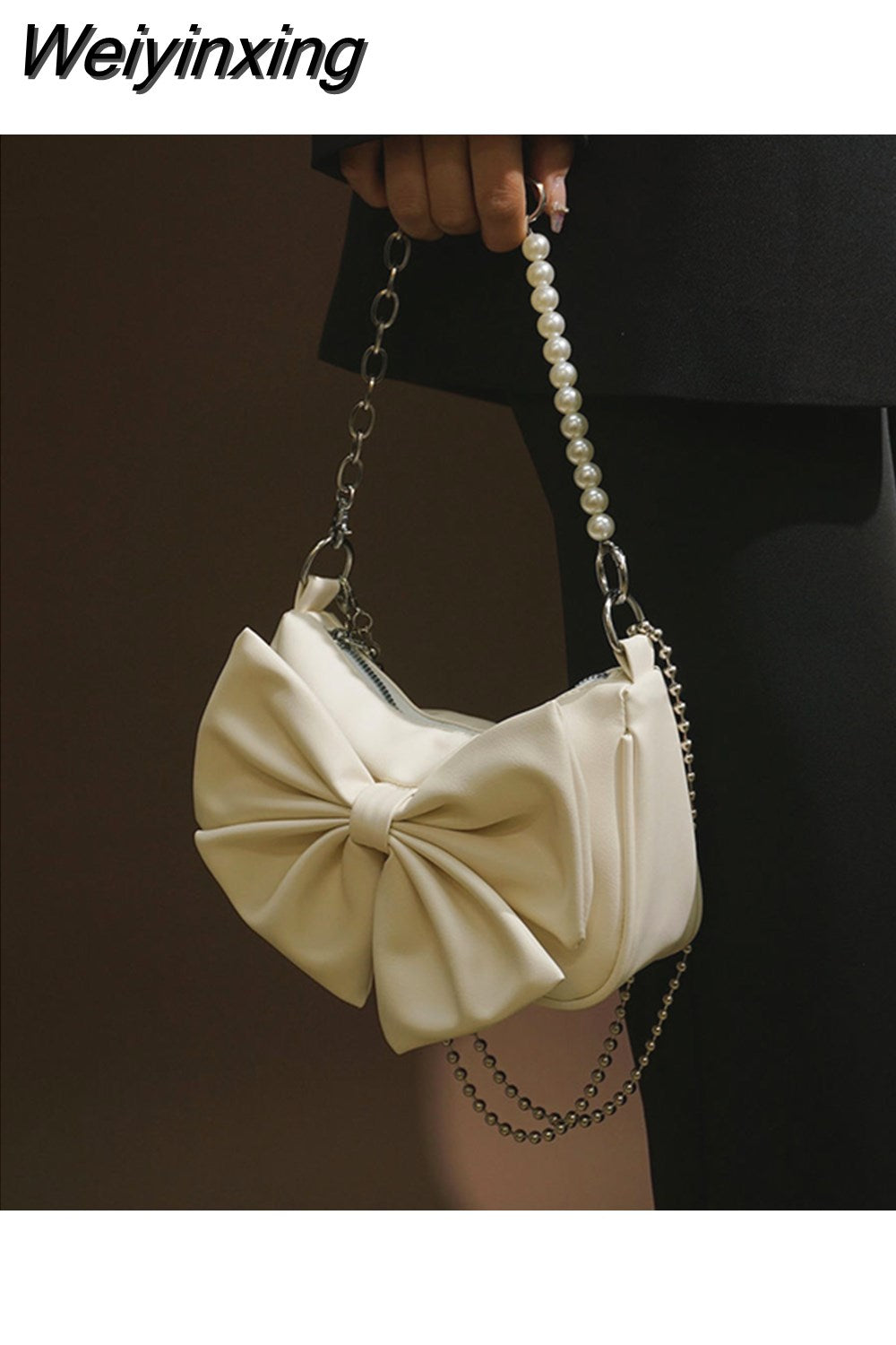 Weiyinxing Luxury Pearl Bow Shoulder Bag 2023 Summer Fashion Versatile Chain Crossbody Bag for Women Purses and Handbags