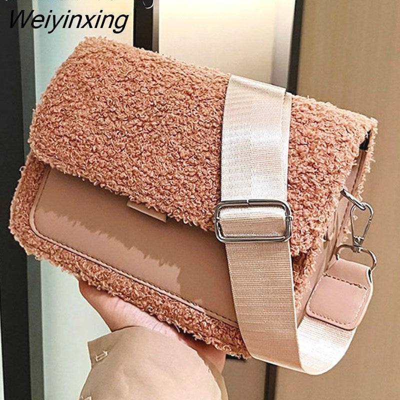 Weiyinxing MANTANG New Winter Wool Shoulder Bag Plush Messenger Bags for Women Brand Designer Handbags and Purses Ladies Crossbody Bag