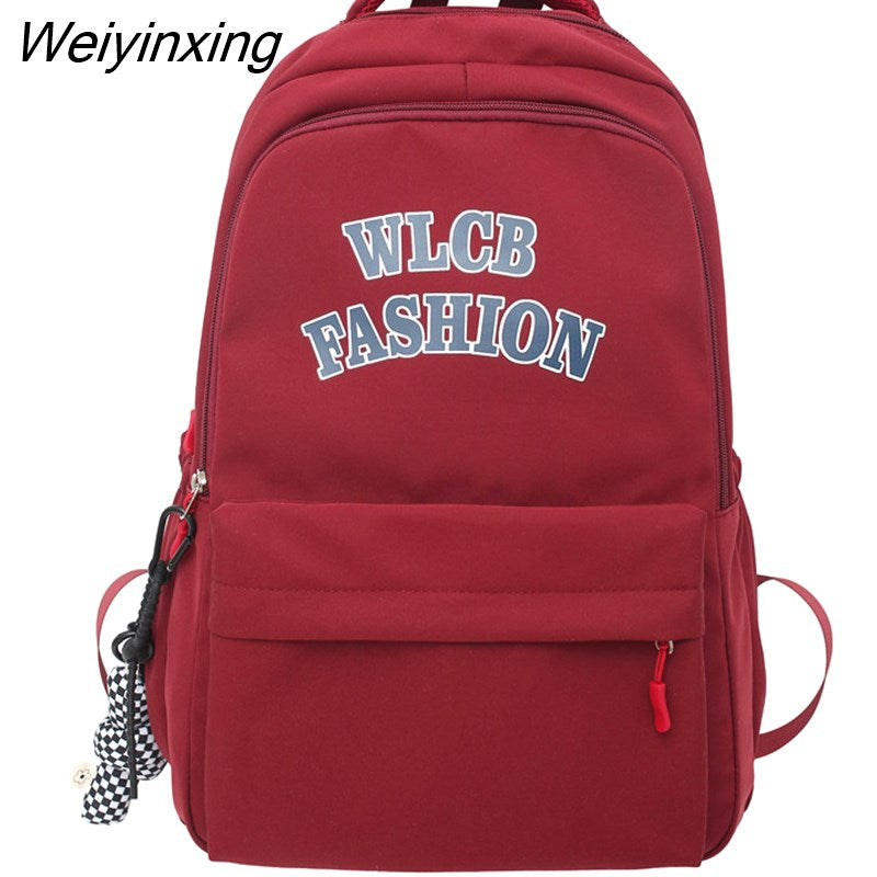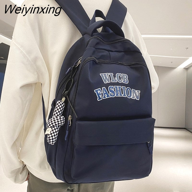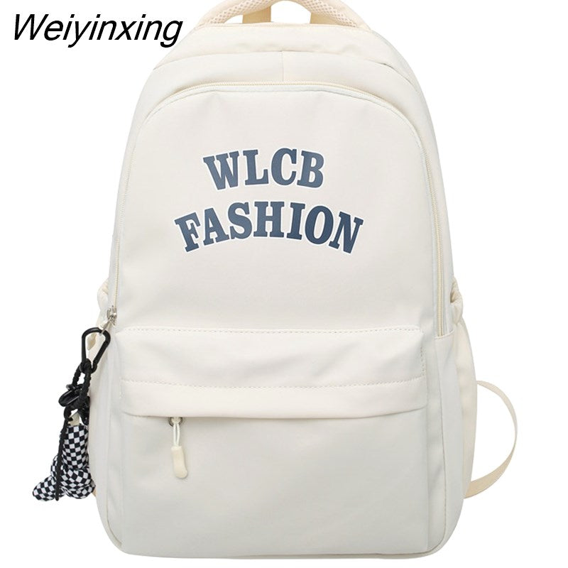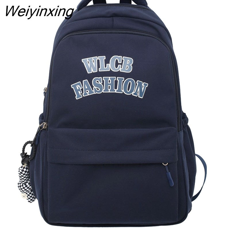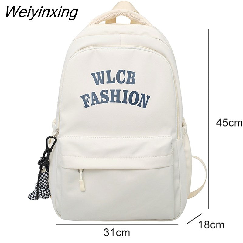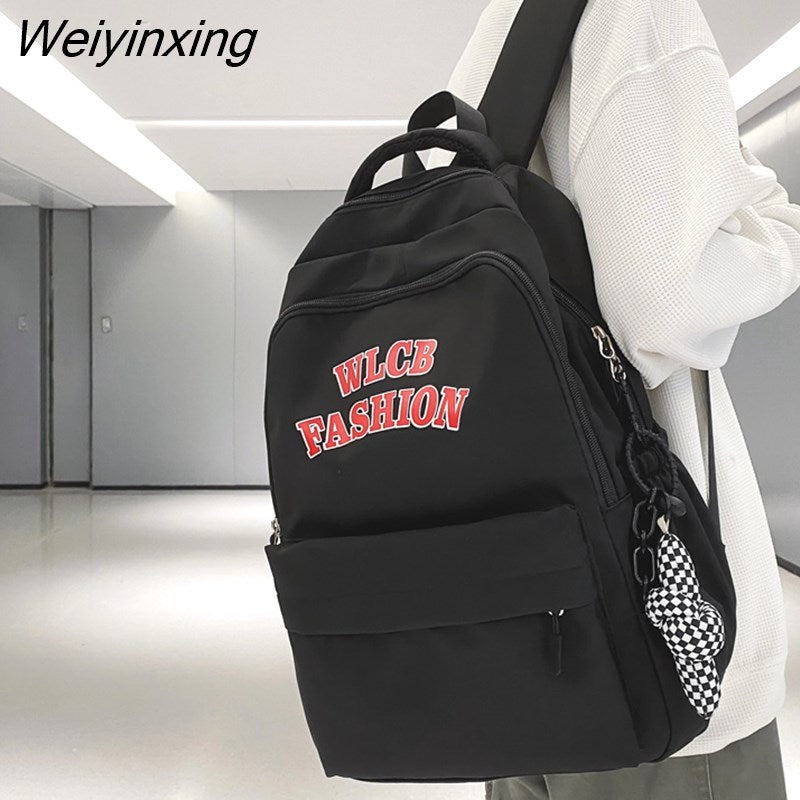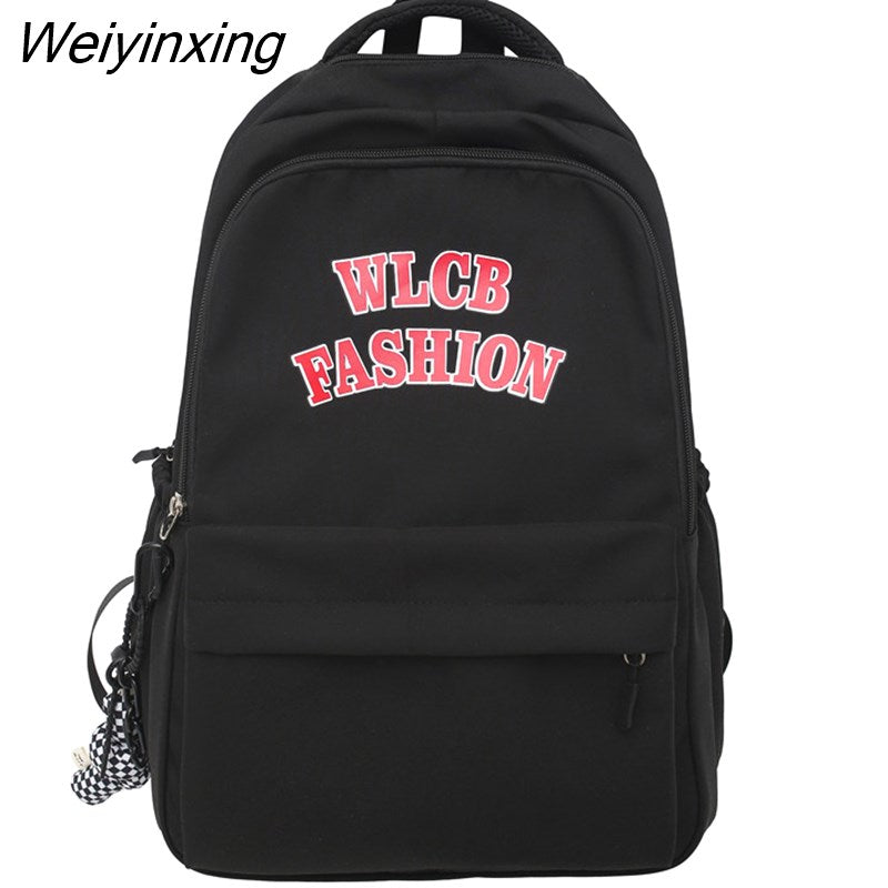 Weiyinxing Men and Women Cool Waterproof Nylon Laptop Backpack Large Capacity Letter Printing Travel Book Bag Teenagers Preppy Schoolbag