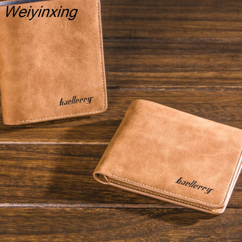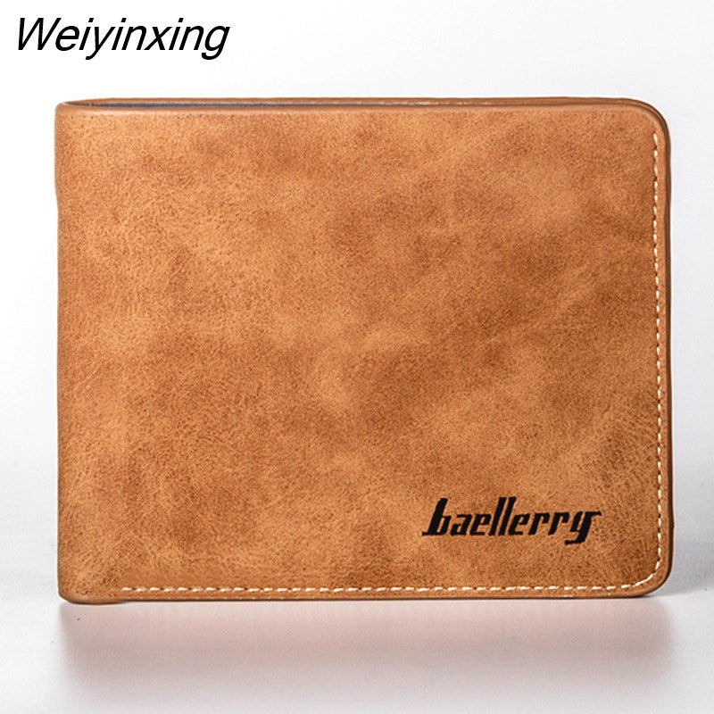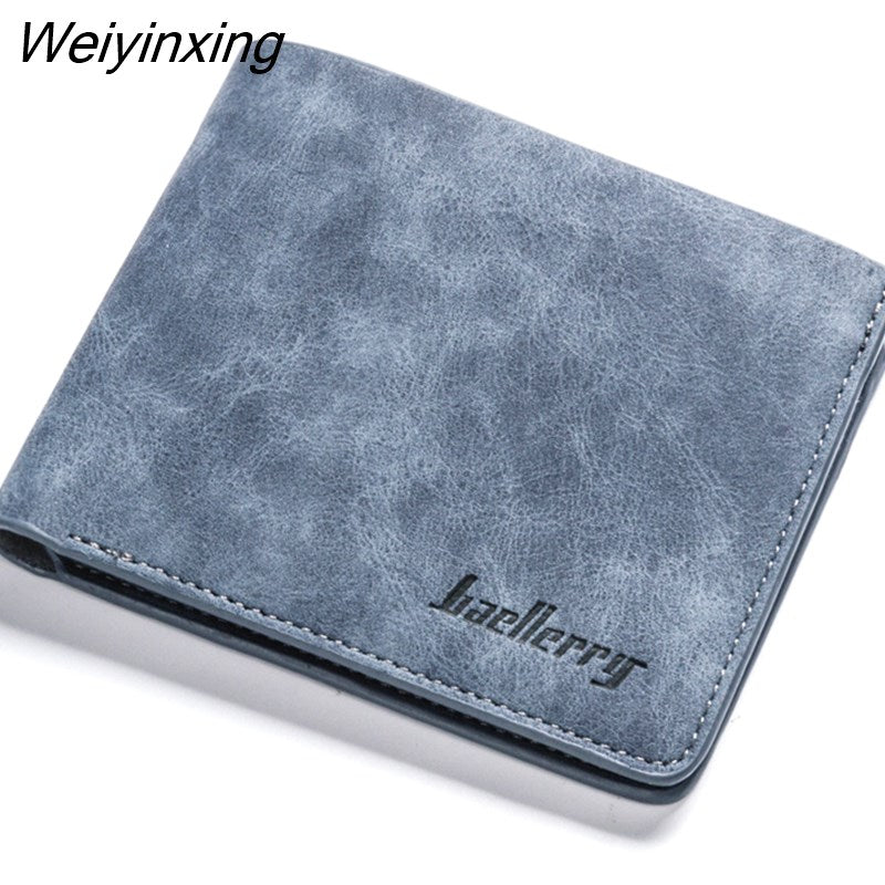 Weiyinxing Men Retro Frosted PU Wallet Two Folding Male Purse Credit Card Holder Solid Color Short Wallet Purse and Wallet