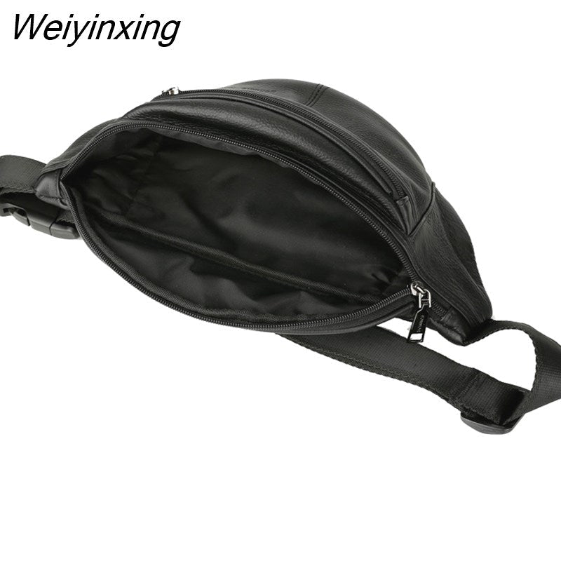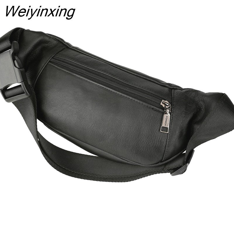 Weiyinxing Men Retro Genuine Leather Waist Bags High Quality Cowskin Strap Fanny Pack Casual Hip Purse Cowhide Travel Chest Bags