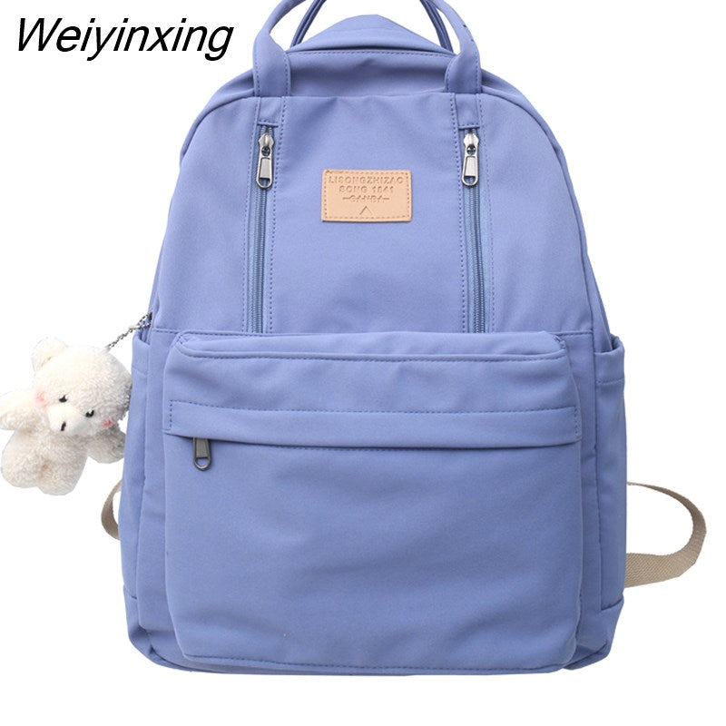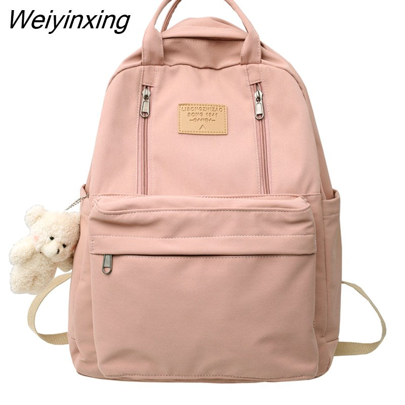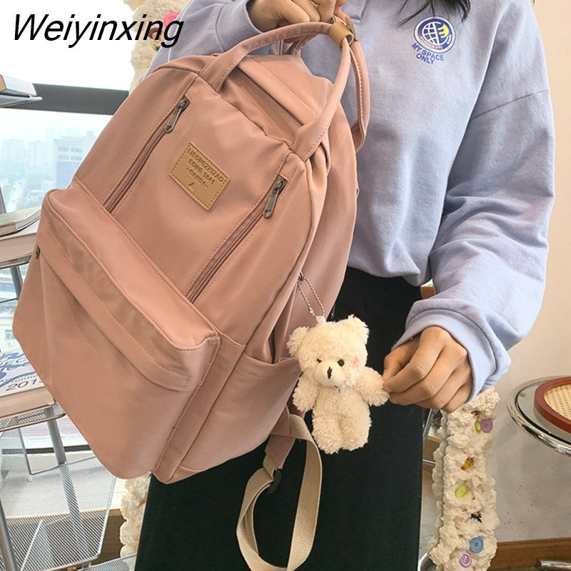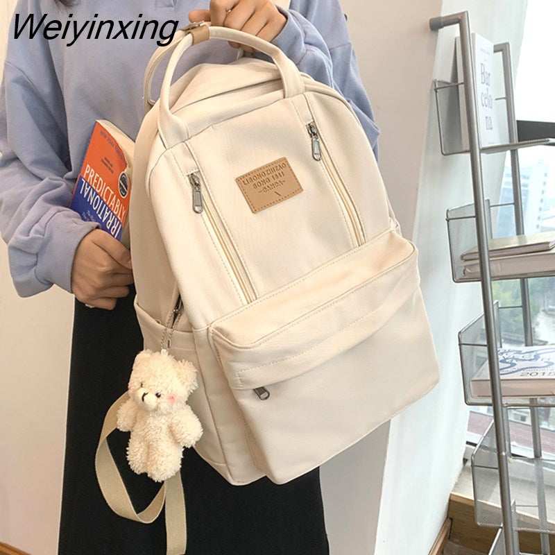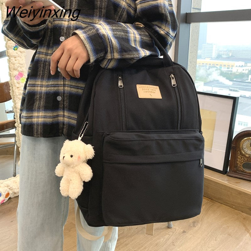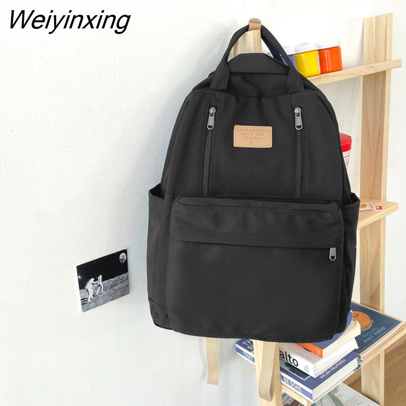 Weiyinxing Multifunction Double Zipper Women Backpack Teenager Girls Laptop Backpack Student Shoulder Bag Korean Style School Bag