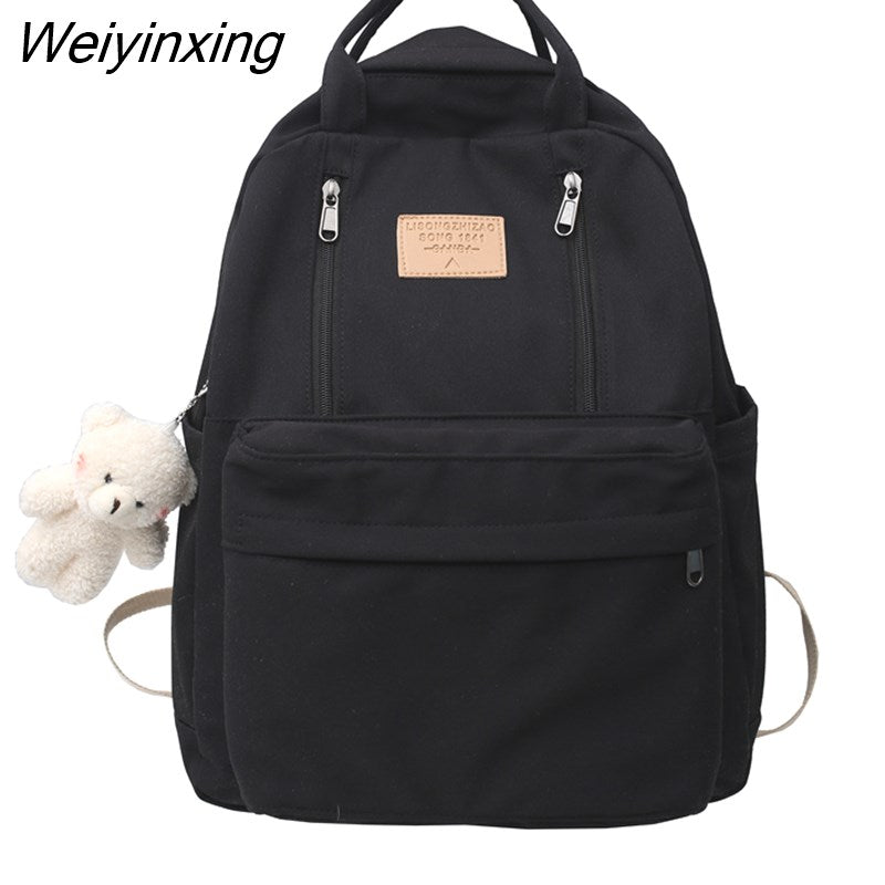 Weiyinxing Multifunction Double Zipper Women Backpack Teenager Girls Laptop Backpack Student Shoulder Bag Korean Style Schoolbag