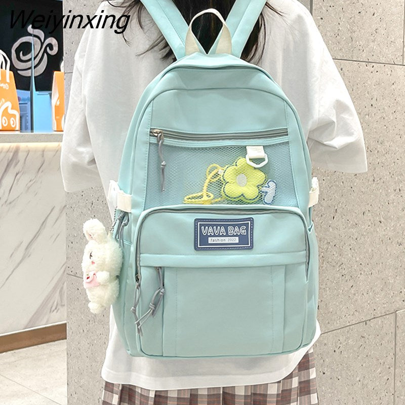 Weiyinxing Multiple Pockets Waterproof Nylon Women Backpack Female Kawaii Mesh Travel Bag Cute Schoolbag for Girl Student Bookbag