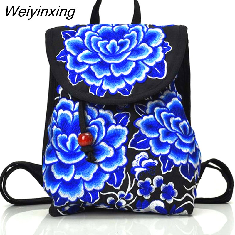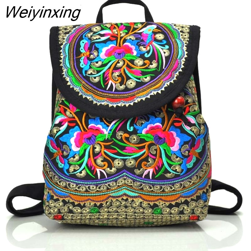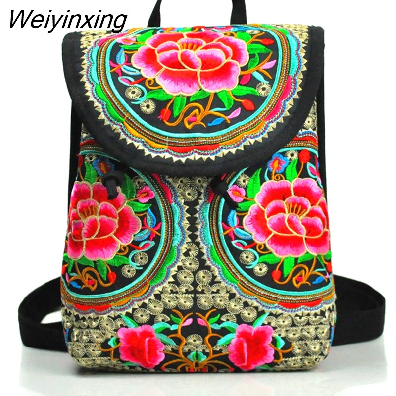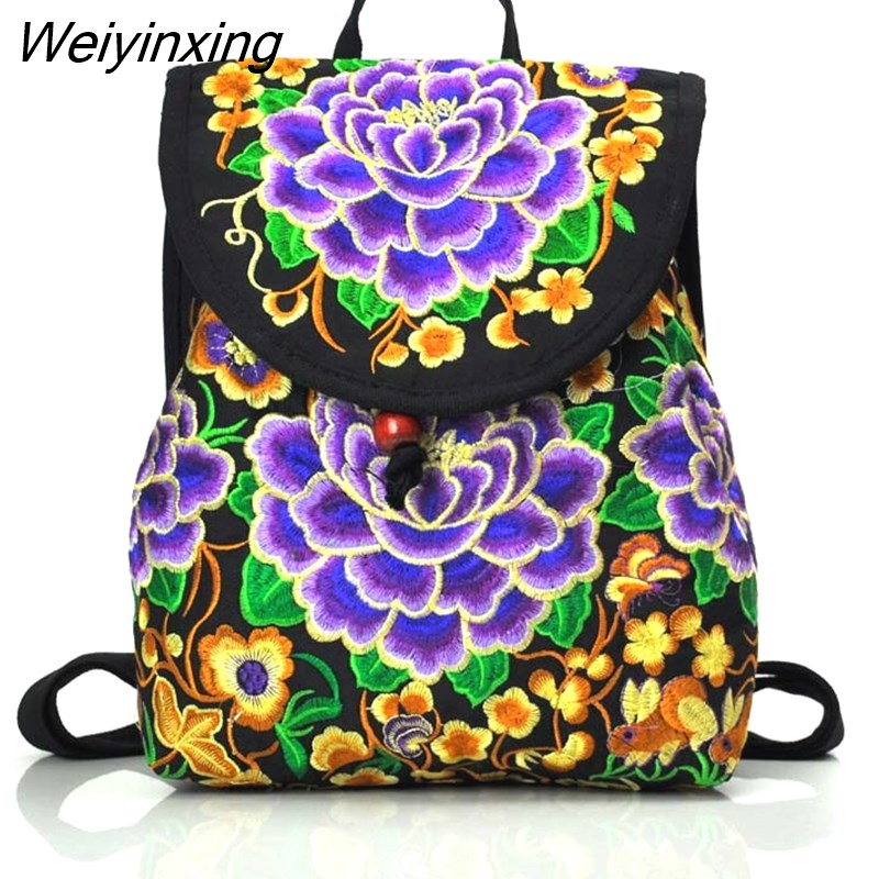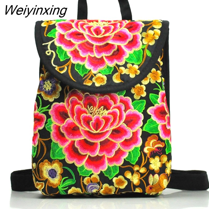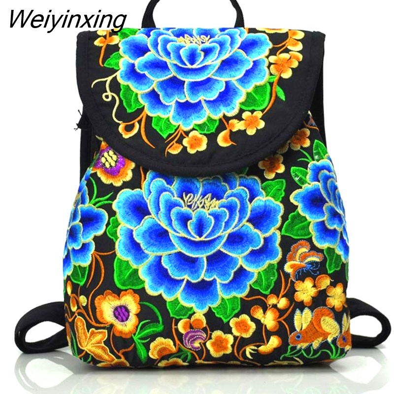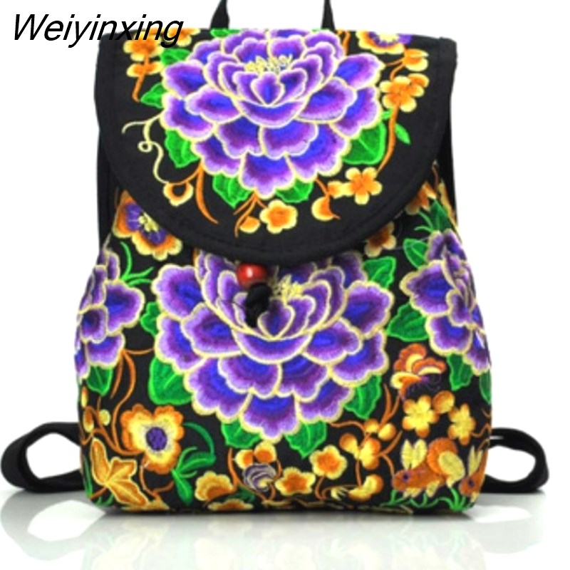Weiyinxing National embroidery women shopping cover backpacks!Nice floral embroidered lady Bohemian Backrack Top-sale canvas backpack
