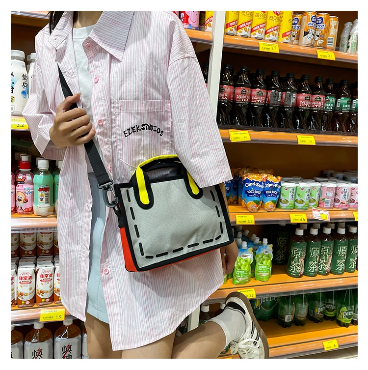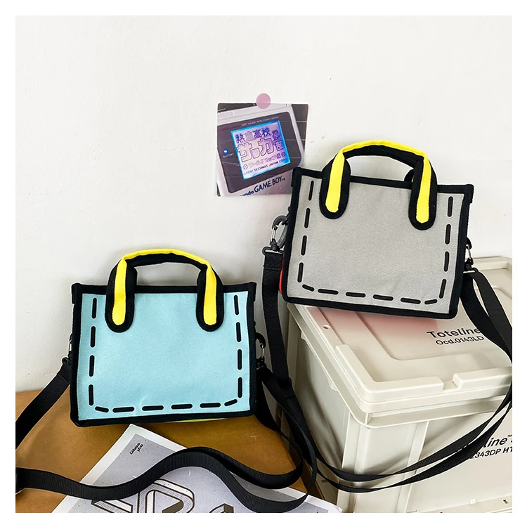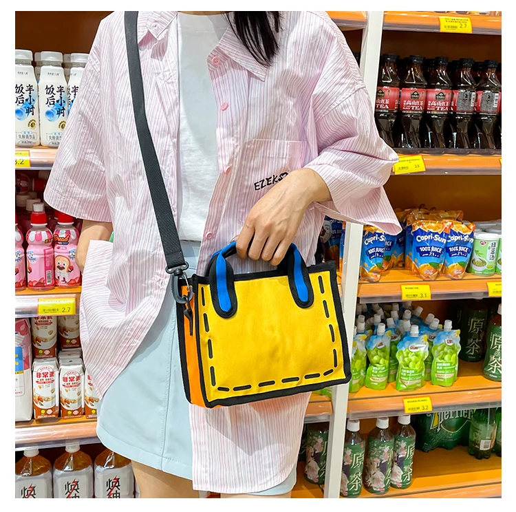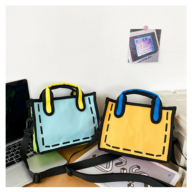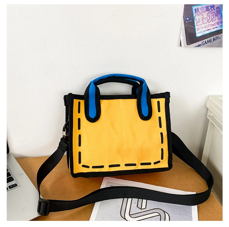 Weiyinxing New Creative 2D Cartoon Cross Body Bag for Women 3D Drawing Cartoon Handbags Nylon Cloth Comic Ladies Shopper Bags