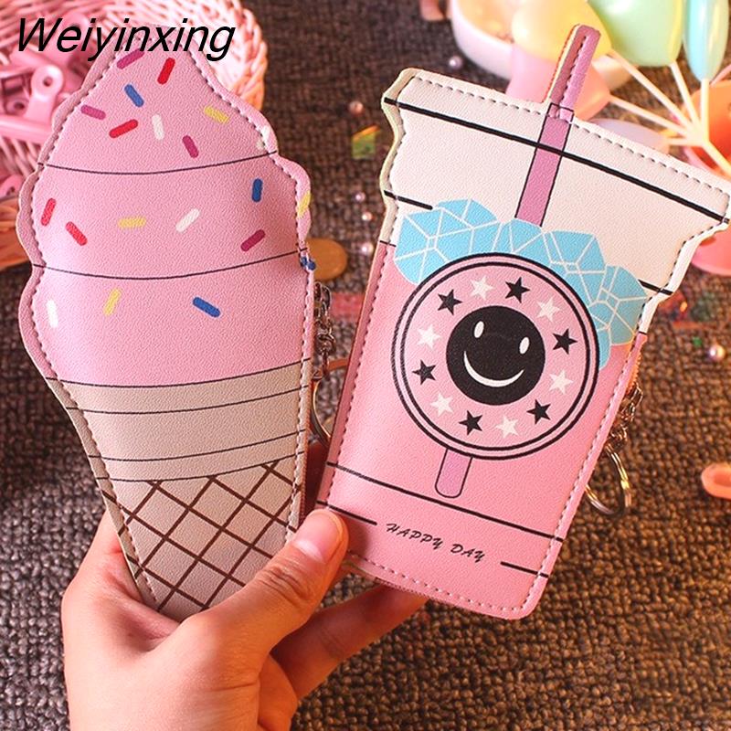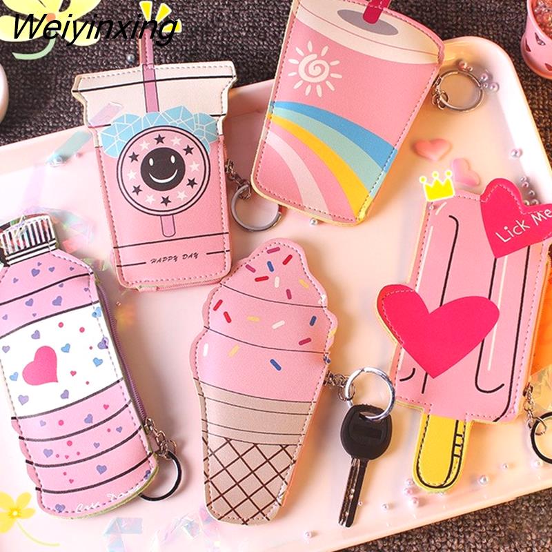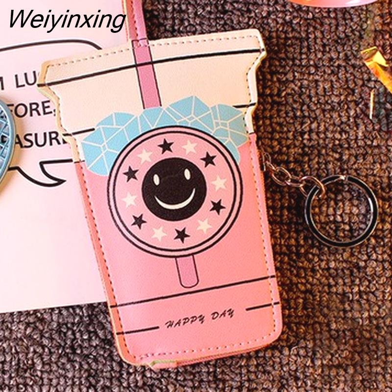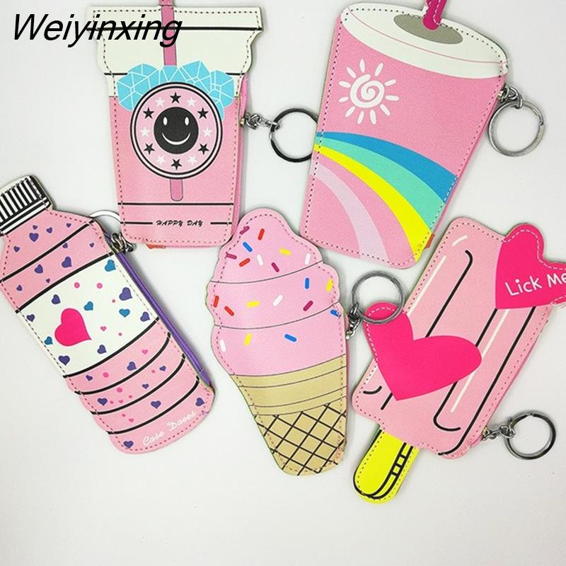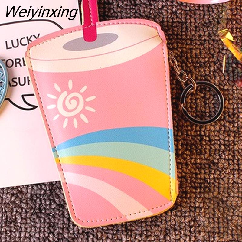 Weiyinxing New Cute Coin Purses Mini PU Leather Card Holder Cartoon Print Wallet Pouch Daily Storage Bag Kawaii Girls Purse Clutch