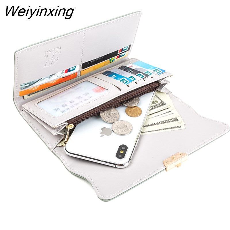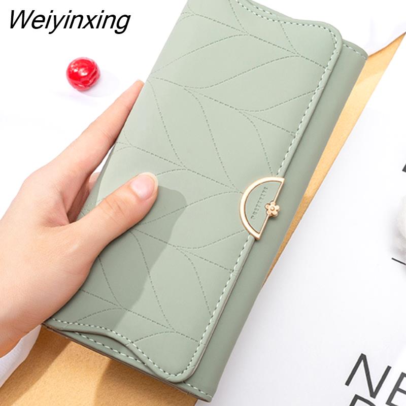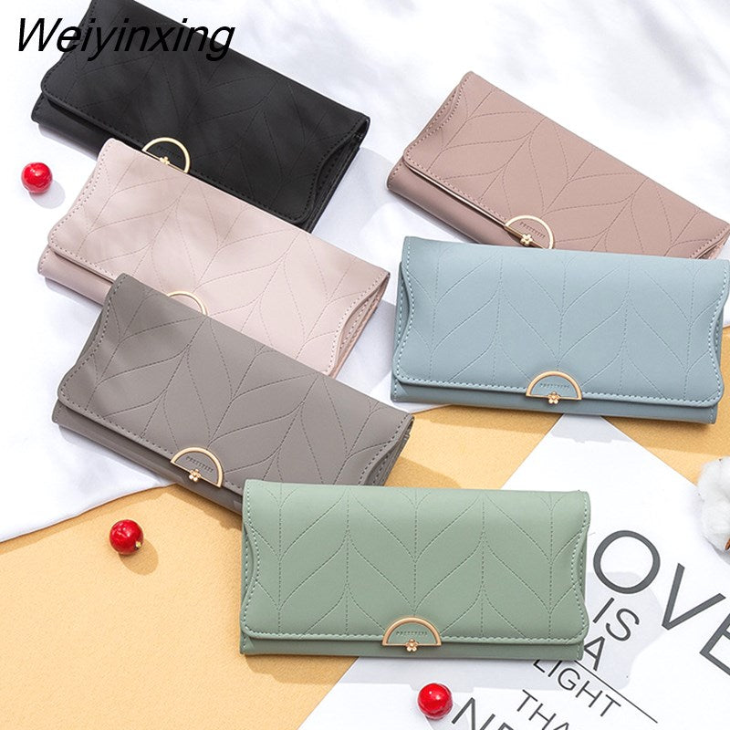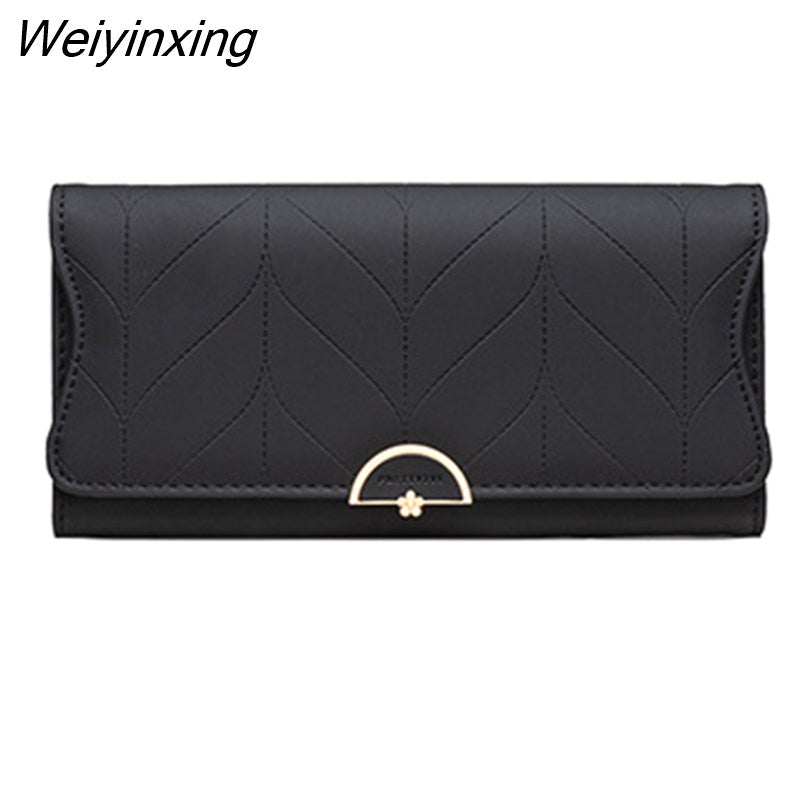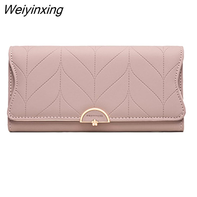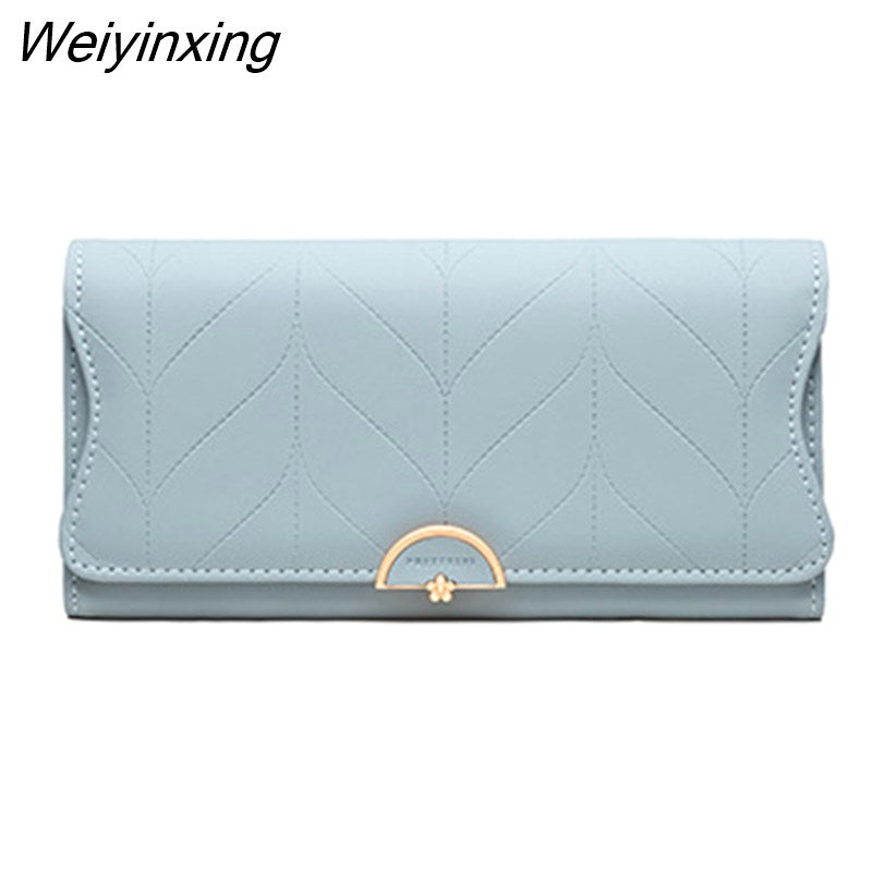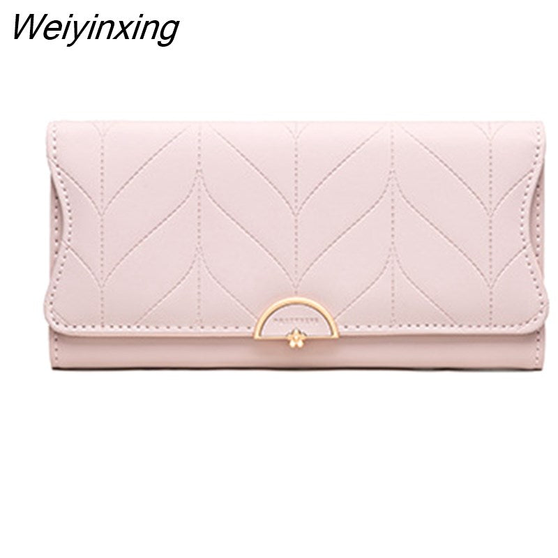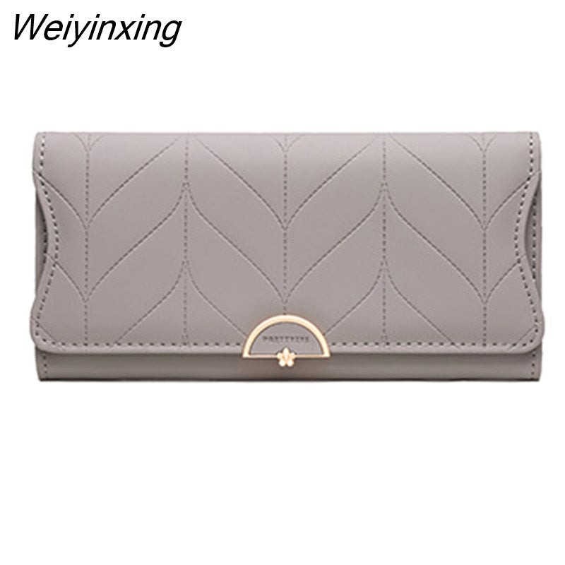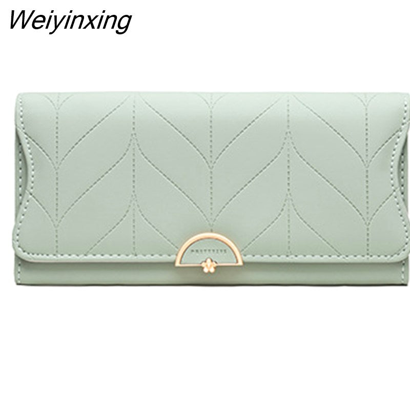 Weiyinxing New Fashion Ladies Long Wallet PU Leather Solid Color Striped Coin Purse Zipper Folding Dark Buckle Women's Clutch