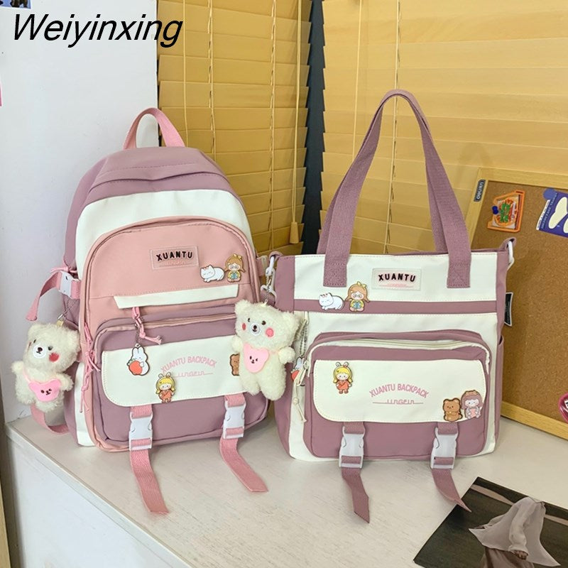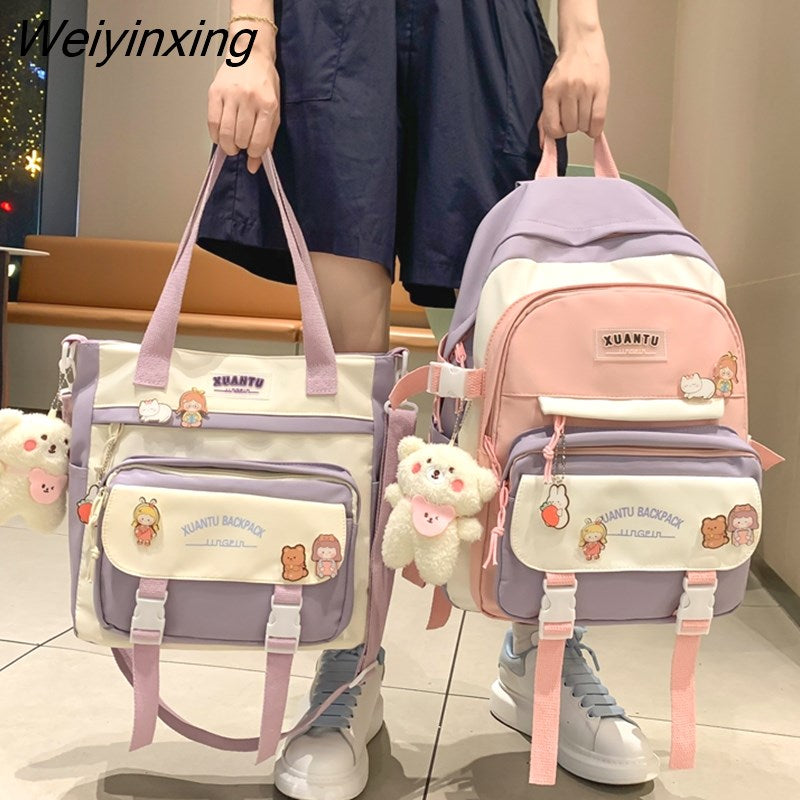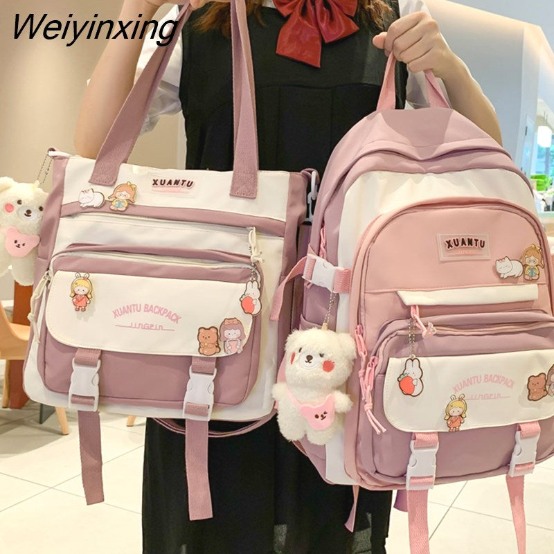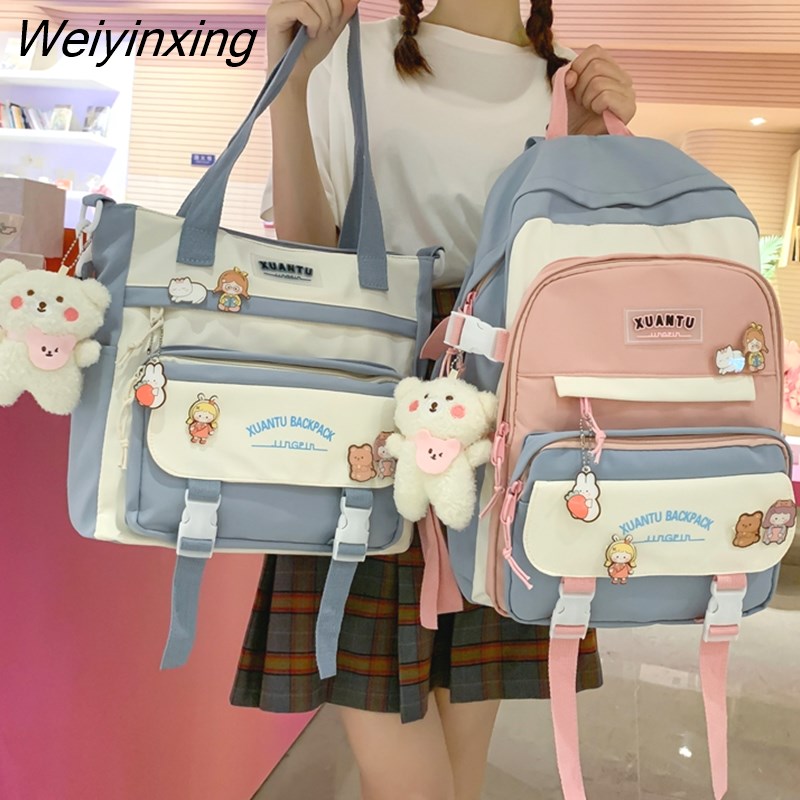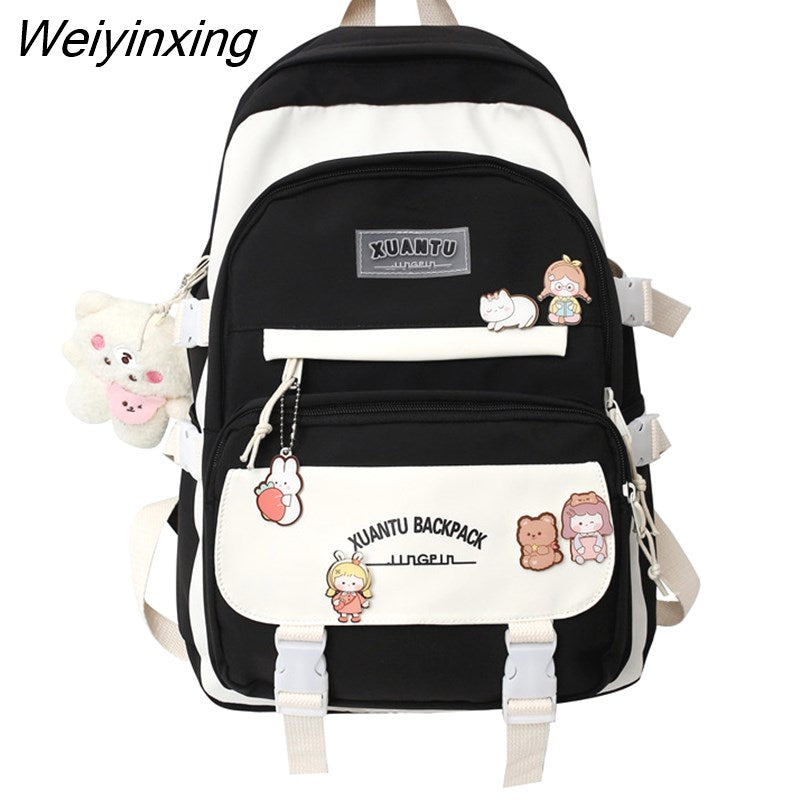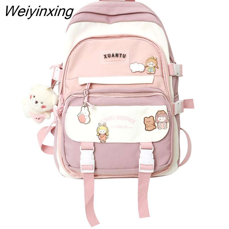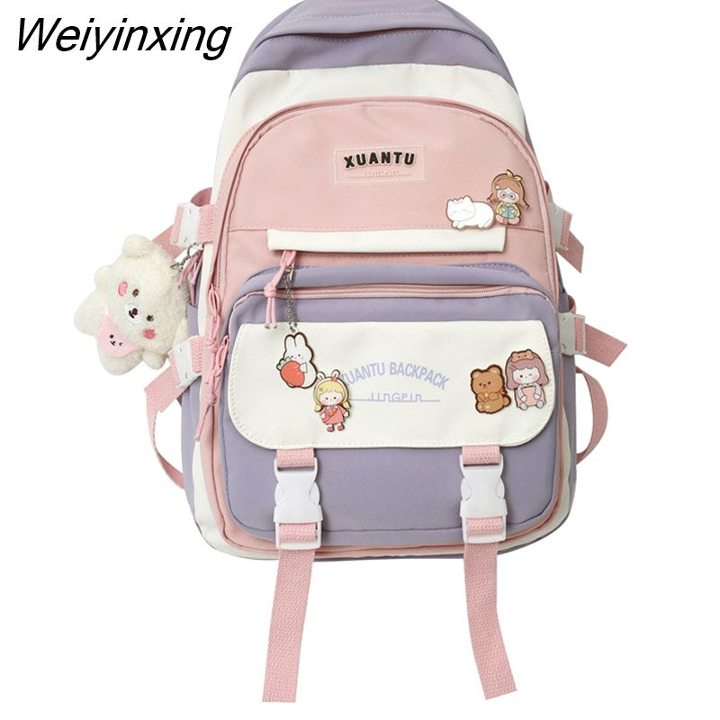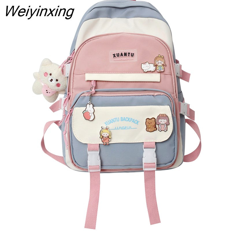 Weiyinxing New High School Girls Backpack Shoulder Bags Multi Pockets Waterproof School Bag Teenage Girls Kawaii Backpack Mochila
