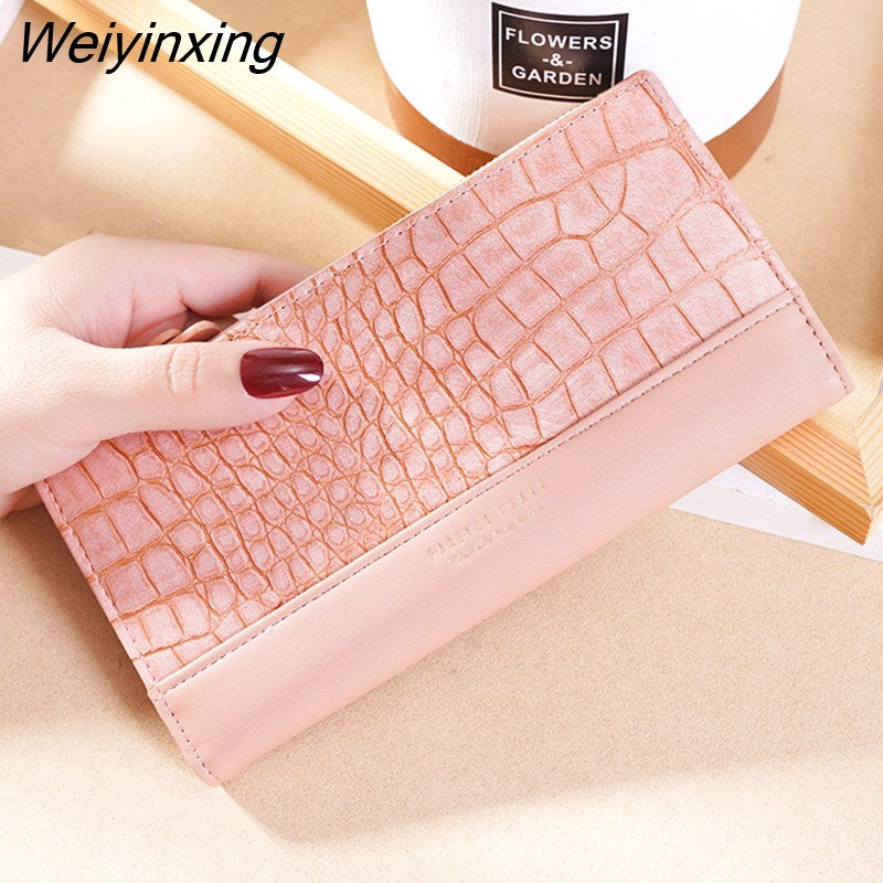 Weiyinxing New Korean Version Crocodile Pattern Long Wallet Ladies Color Matching Multi-card Pocket Thin Leather Fashion Women Purse