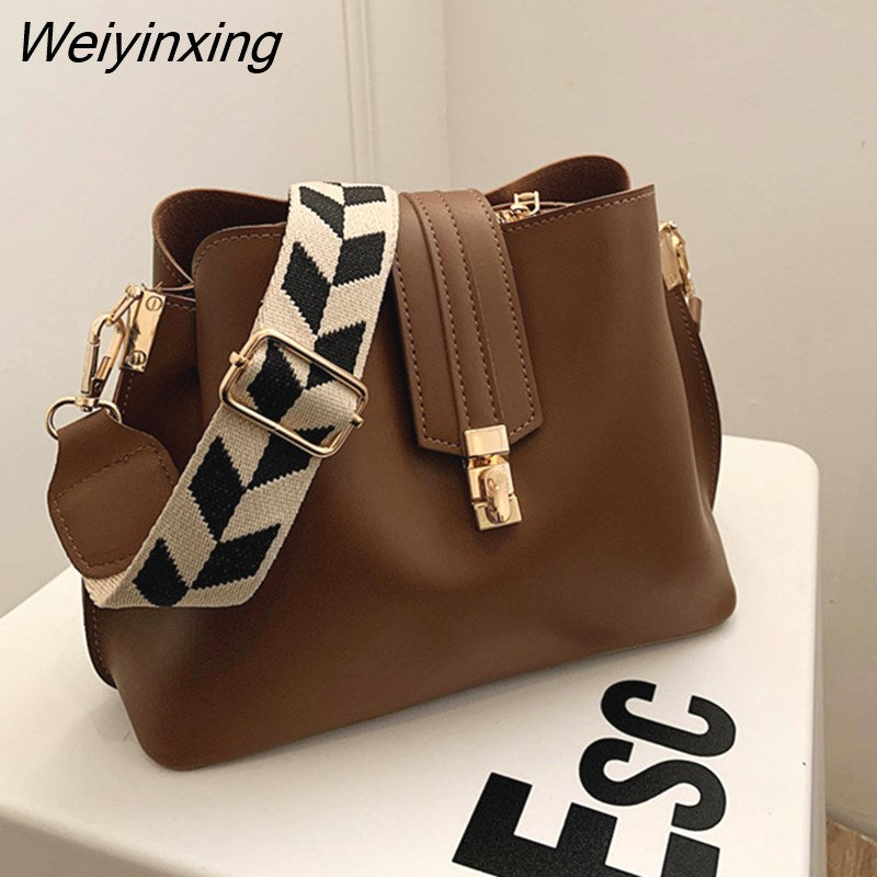 Weiyinxing New Luxury Designer Women Shoulder Bags Leather Bucket Purse Fashion Brands Crossbody Bag Stylish Chic Women Handbag Purse