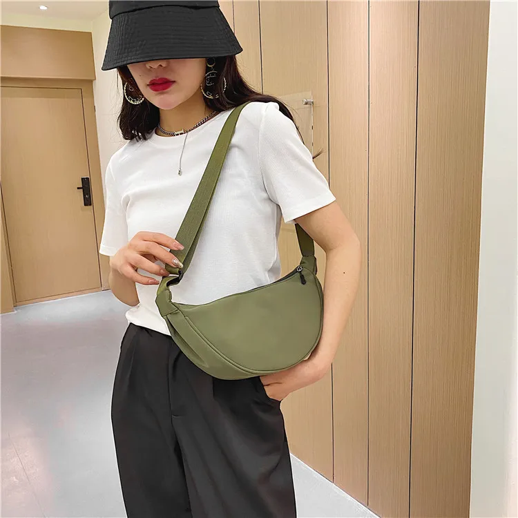 Weiyinxing New Nylon Women's Shoulder Bag Female Solid Color Dumpling Bag Lightweight Small Satchel Underarm Bag Simple Messenger Bags