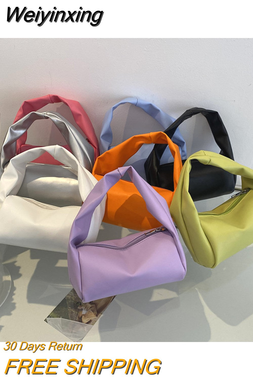 Weiyinxing New One Shoulder Armpit Bags Fashion Knot Tofu Handbag Women's Subaxillary Bag Simple Casual Soft Pillow Bag Soild Color