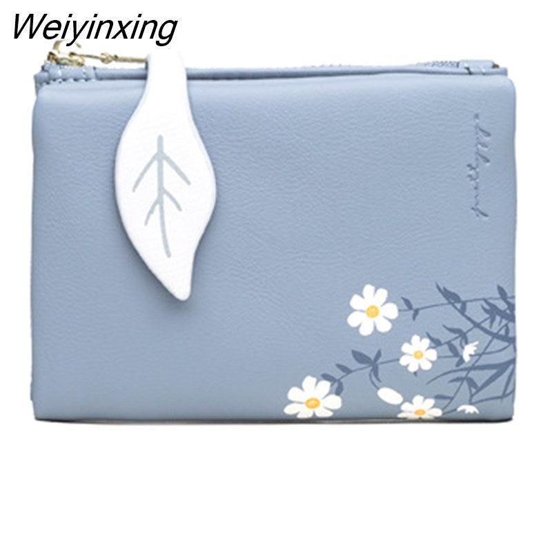 Weiyinxing New PU Leather Women's Short Wallet Small Fresh Korean Zipper Folding Coin Purse Multifunctional Buckle 2 Fold Card Holder