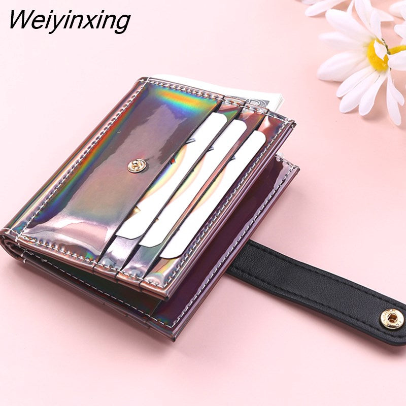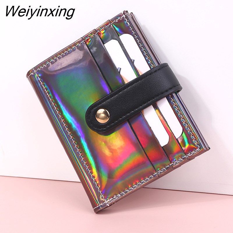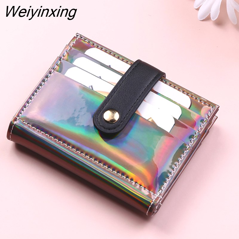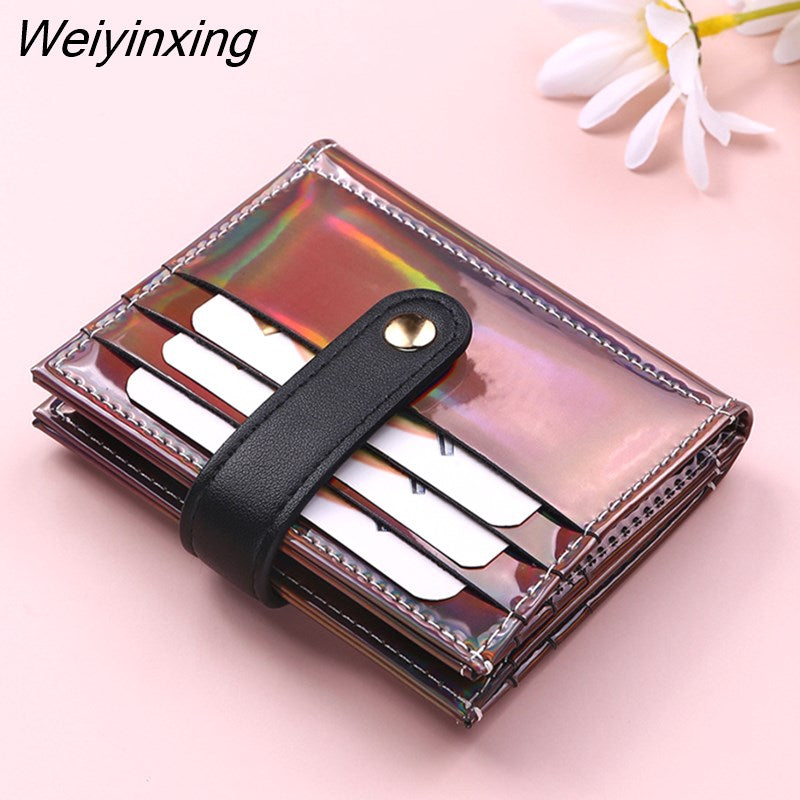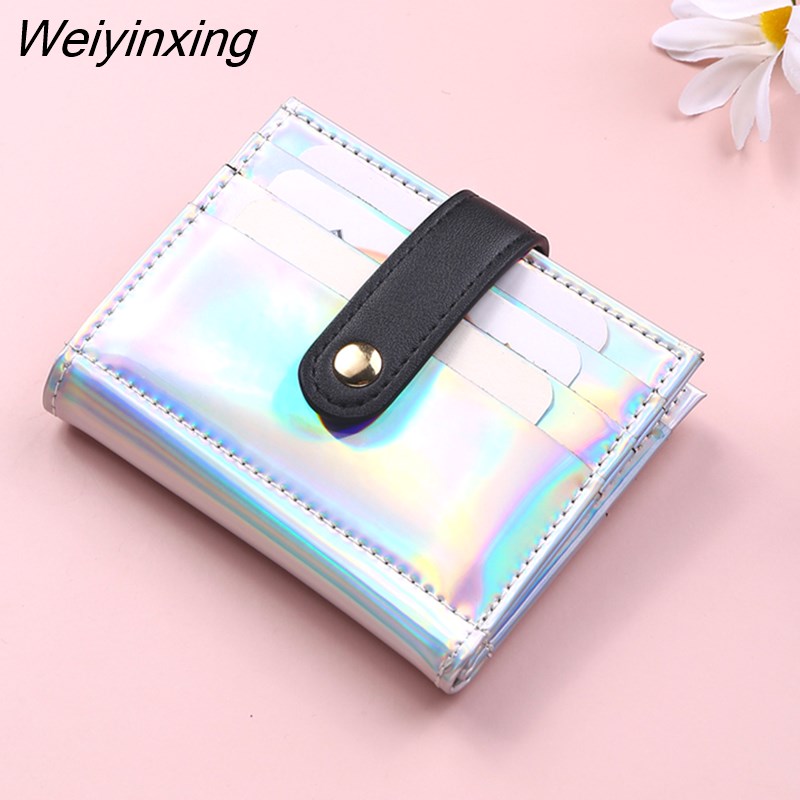 Weiyinxing New PVC Laser Women's Wallet Fashion Sequins Multi-card Slot Two-fold Card Holder Trend Solid Color Buckle Coin Purse