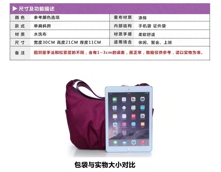 Weiyinxing New Simple Nylon Shoulder Bag Fashion Casual Large Capacity Lady Diagonal Mummy Bag