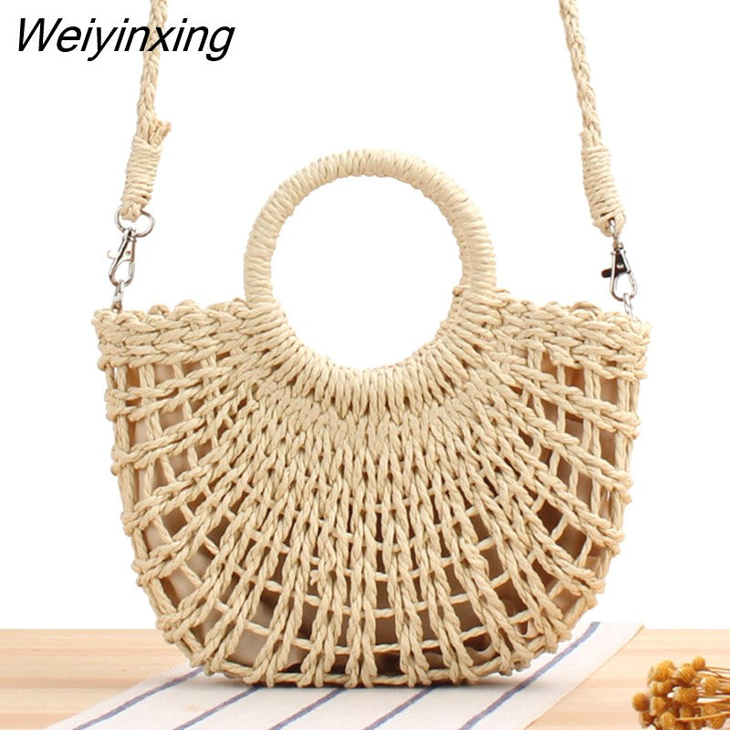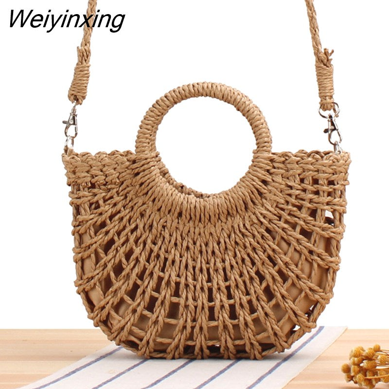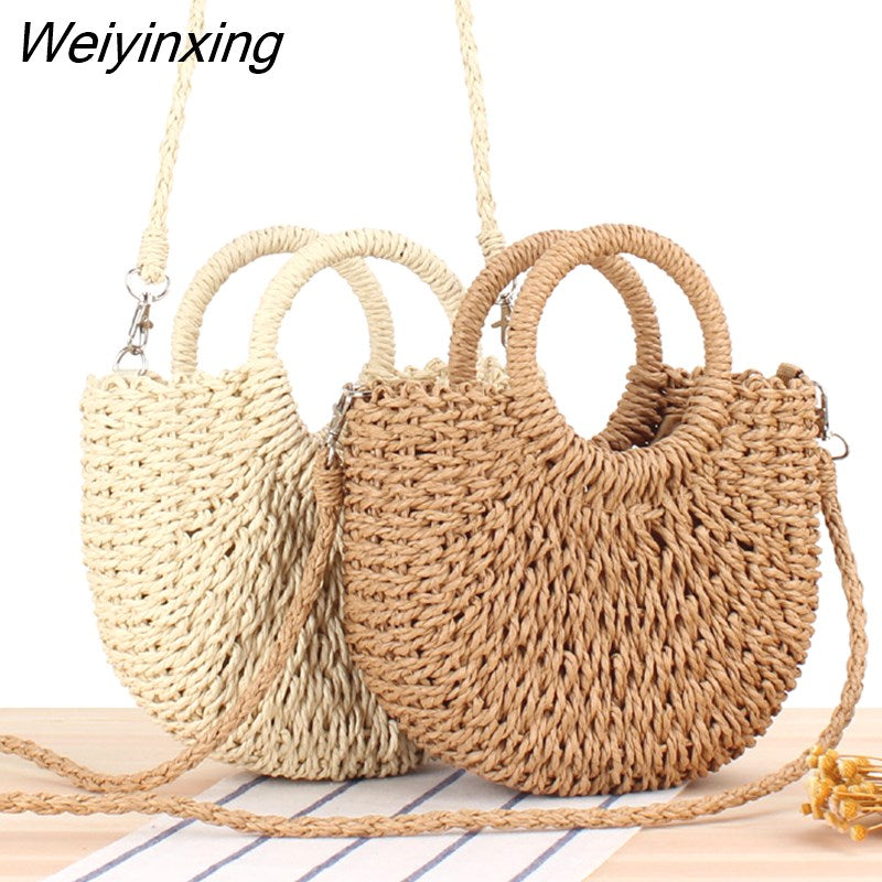 Weiyinxing New Trend Simple Style Popular Semi Round Straw Woven Bag Beach Hand Woven Handbag Holiday Women's Bag Casual Shoulder Bags