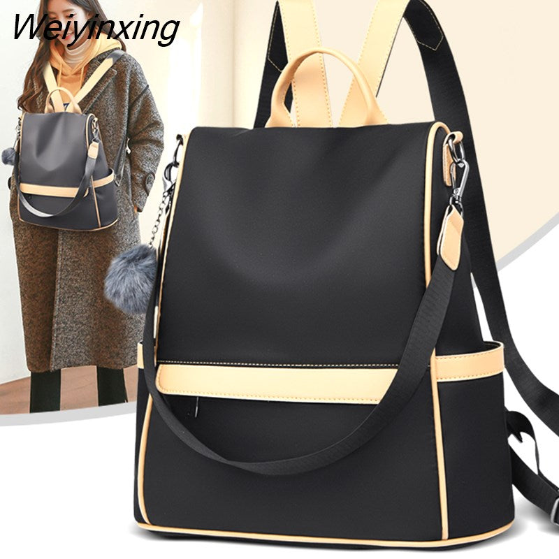 Weiyinxing New Waterproof Fabric Large Female Shoulder Bag Large Capacity Simple Style Casual Mochila Travel Women Anti-theft Backpack