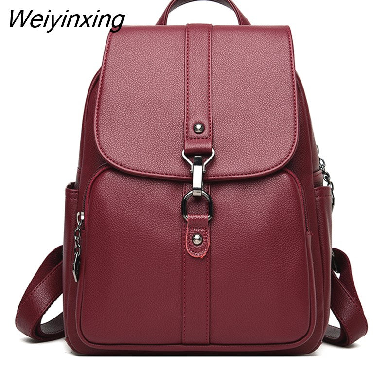 Weiyinxing New Women High Quality Leather Backpacks Female Shoulder Bag Sac A Dos Ladies Travel Bagpack Mochilas School Bags for Girls