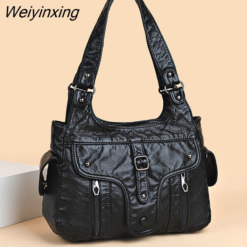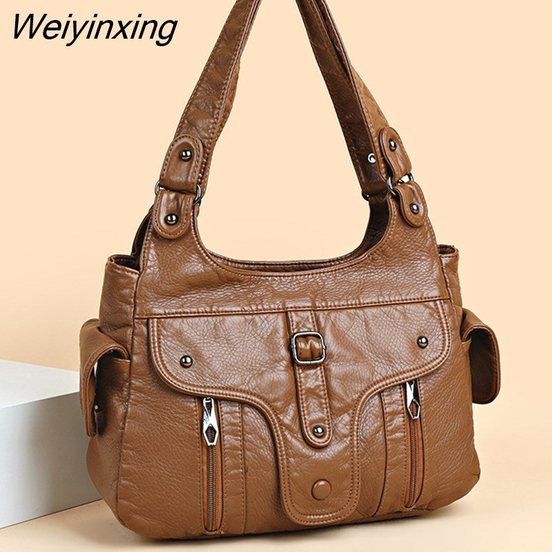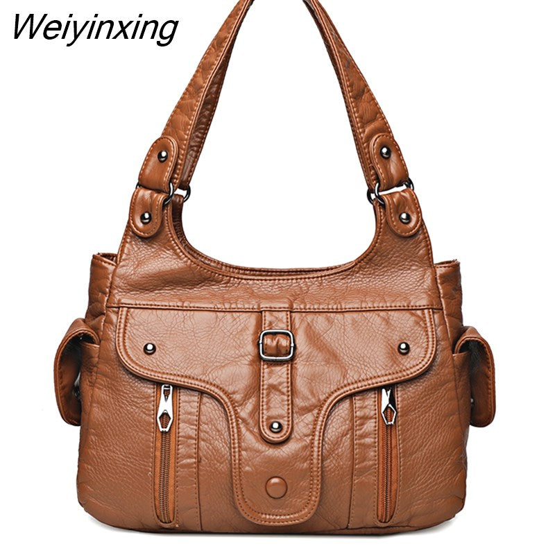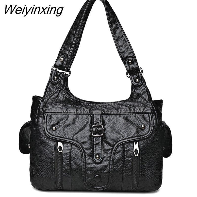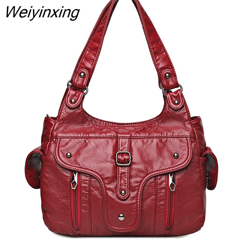 Weiyinxing New Women Leather Luxury Handbags Soft Large Capacity Casual Tote Bags High Quality Female Leather Shoulder Bags Female Sac