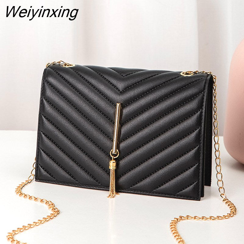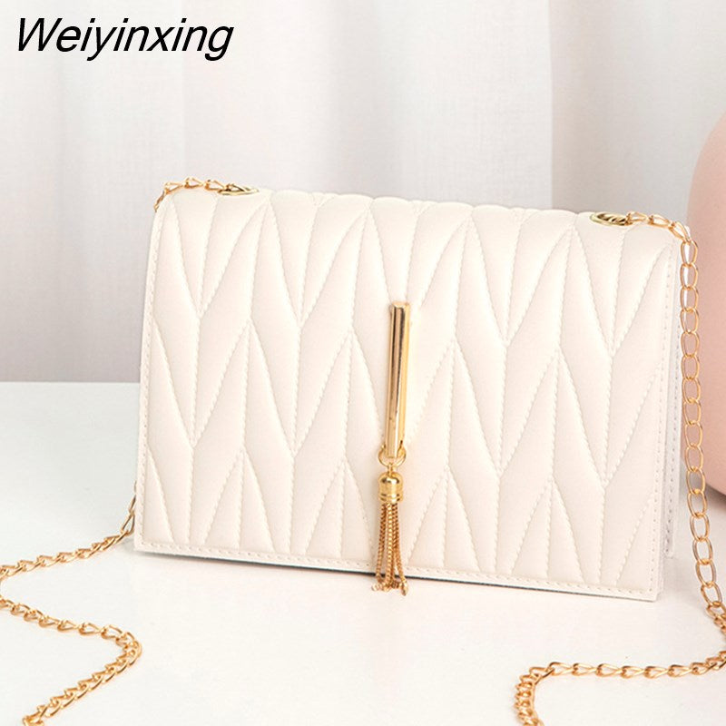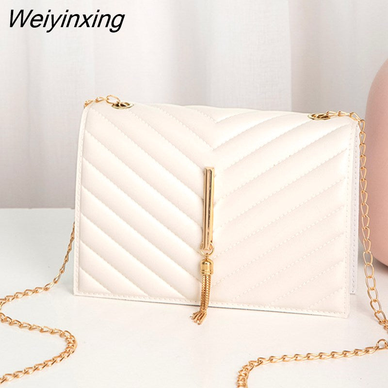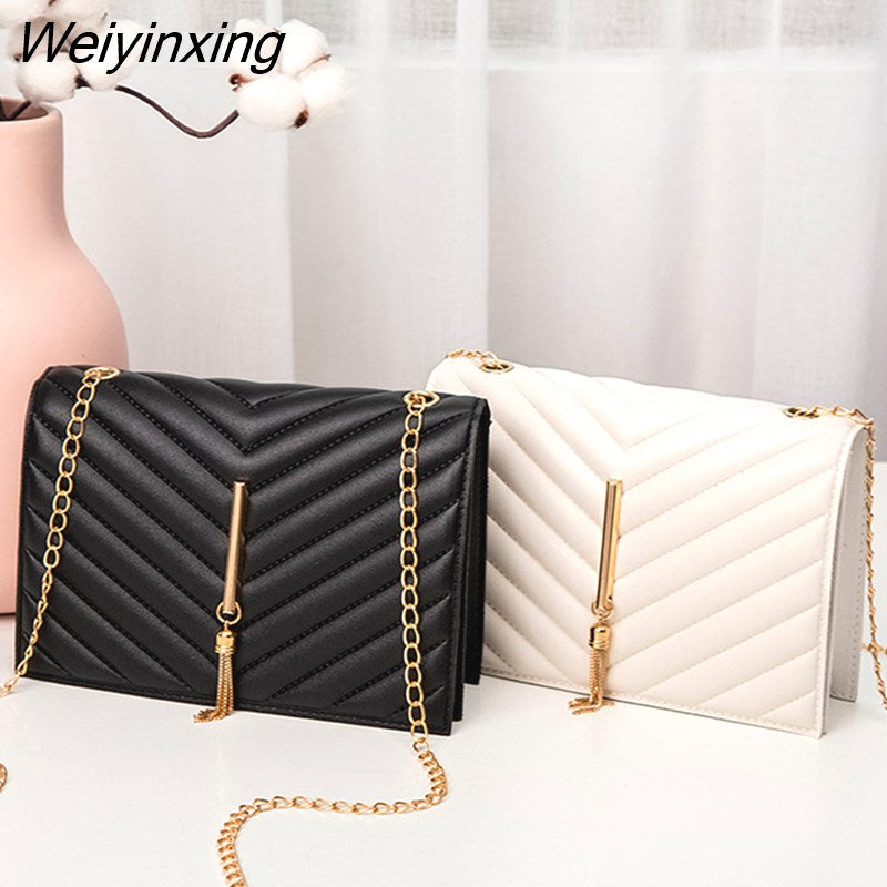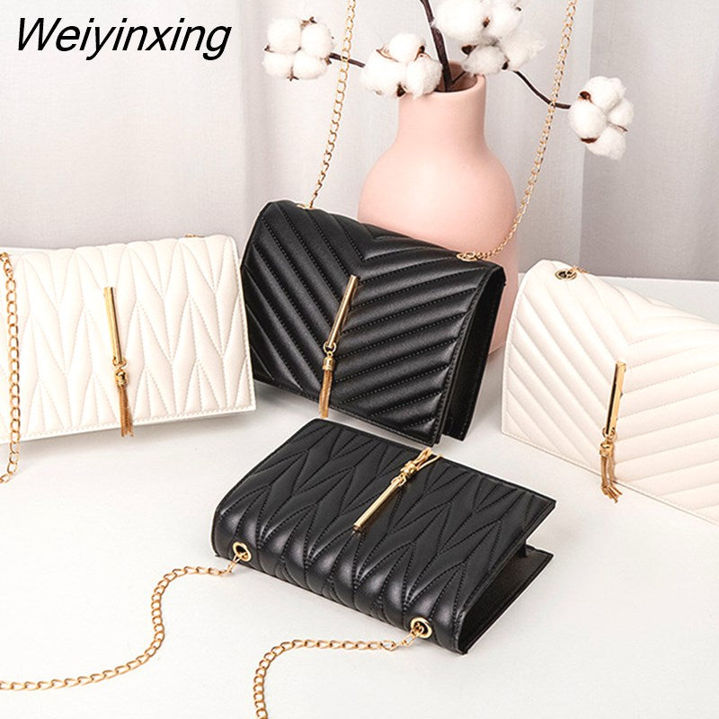 Weiyinxing New Women PU Leather Trend Lingge Crossbody Bag Fashion V Pattern Lattice Small Shoulder Bag White Black