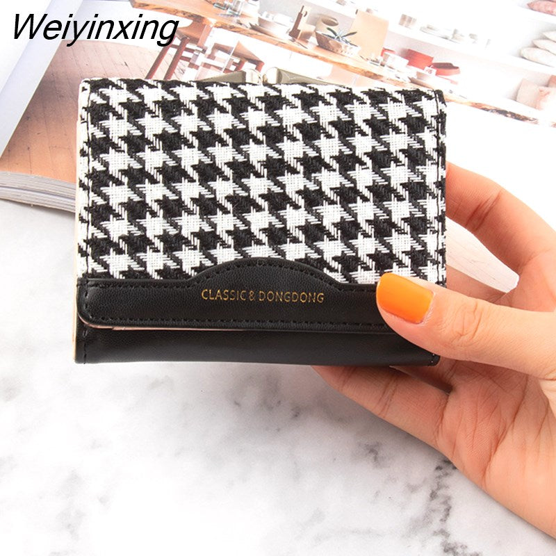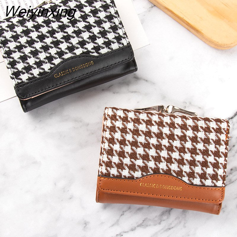 Weiyinxing New Women Wallets Lether Coin Purse for Women Cotton Plaid Fold Card Holder Daily Casual Clutch Money Mini Wallet Handbag