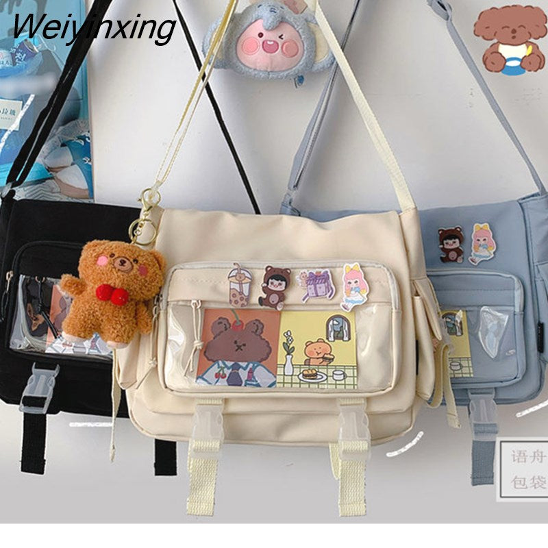 Weiyinxing Nylon Crossbody Bags for Women Solid Color Tote Shoulder Bag Large Capacity Youth Fashion Handbag Messenger Schoolbag