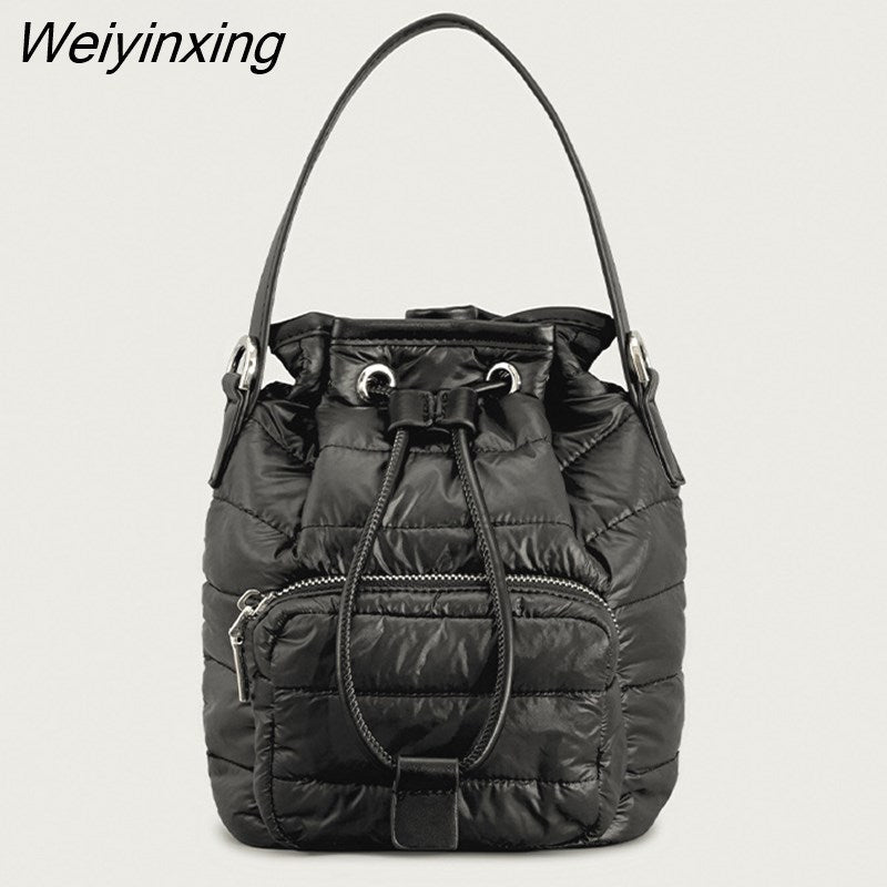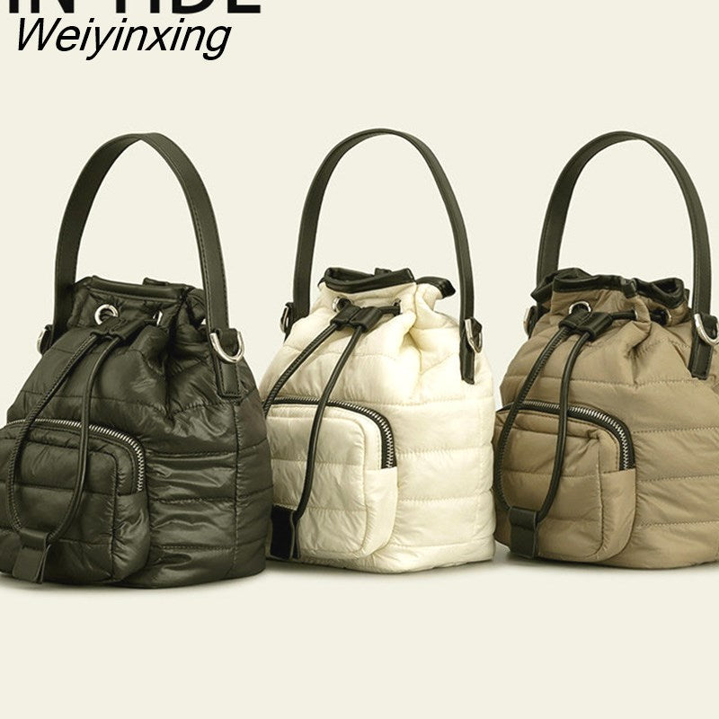 Weiyinxing Nylon Padded Bucket Bag Designer Quilted Women Shoulder Bags Luxury Down Cotton Lady Handbags Casual Winter Tote Bag New