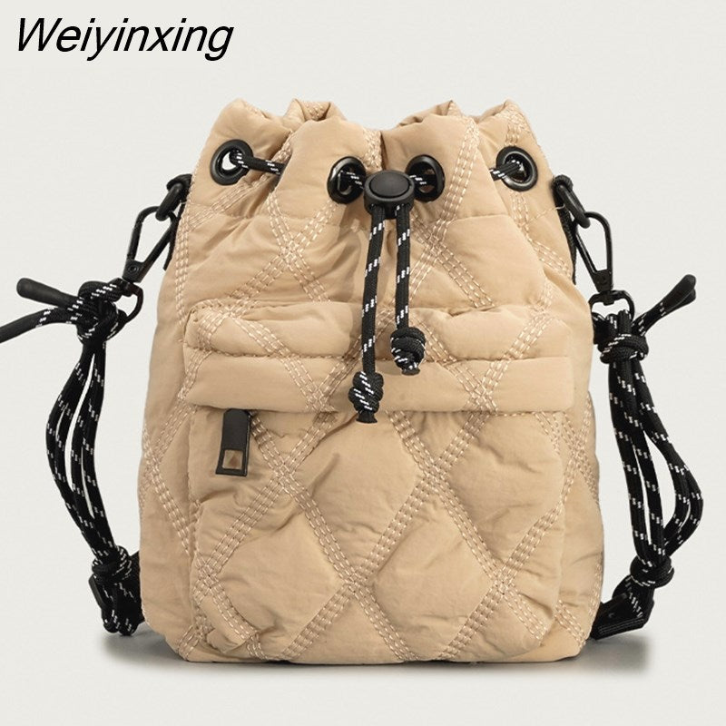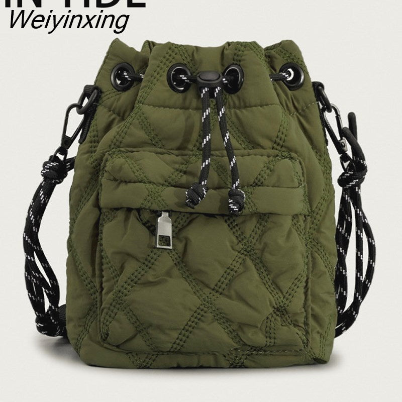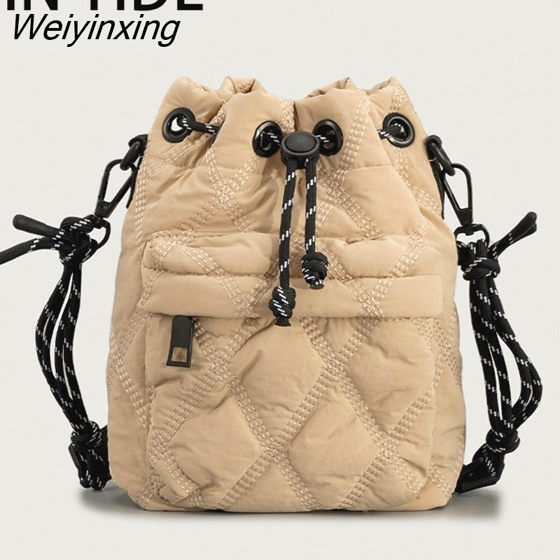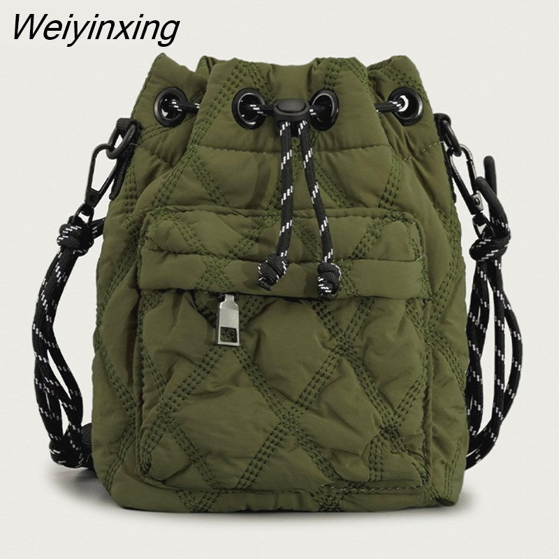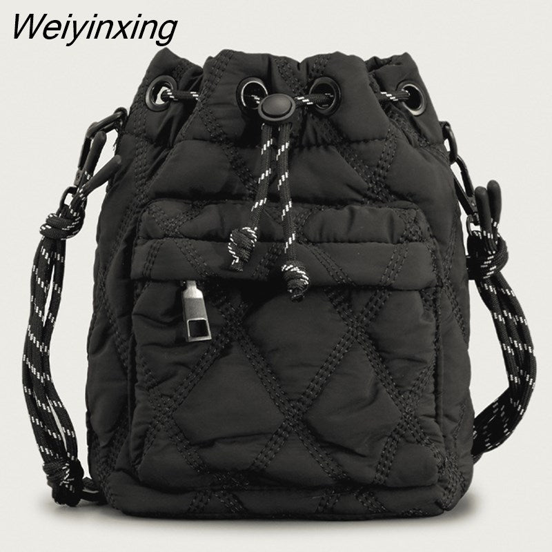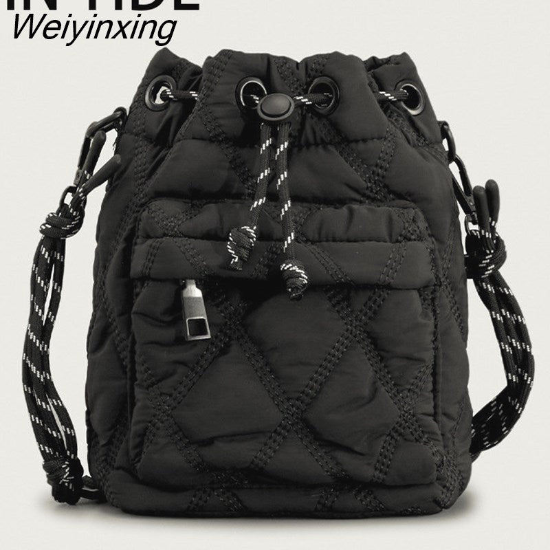 Weiyinxing Nylon Padded Women Shoulder Bags Quilted Drawsting Crossbody Bag Vintage Bucket Bag Small Tote Female Purses 2023 Winter