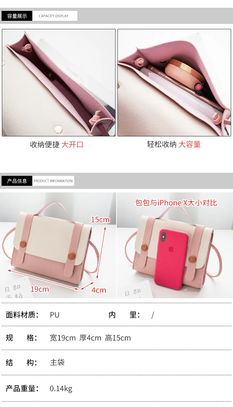 Weiyinxing One Shoulder Bag 2023 Lady HandBag Crossbody Bag Fashion Color Contrast Small Square Bag Fresh Sweet Girl's Style Multicolor