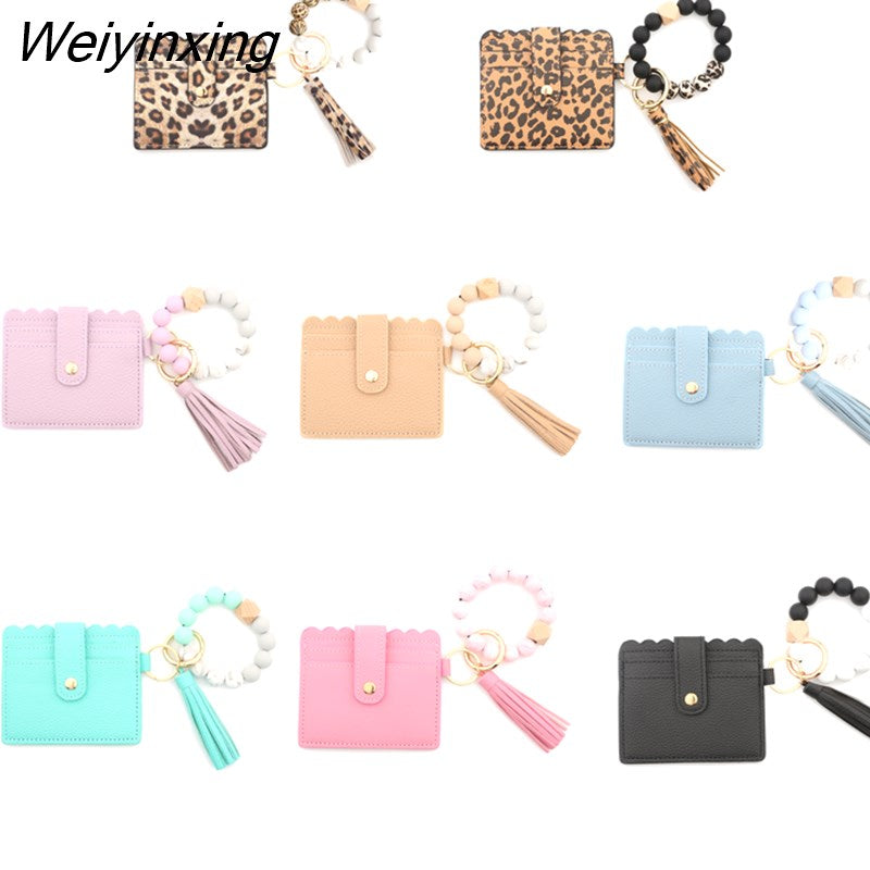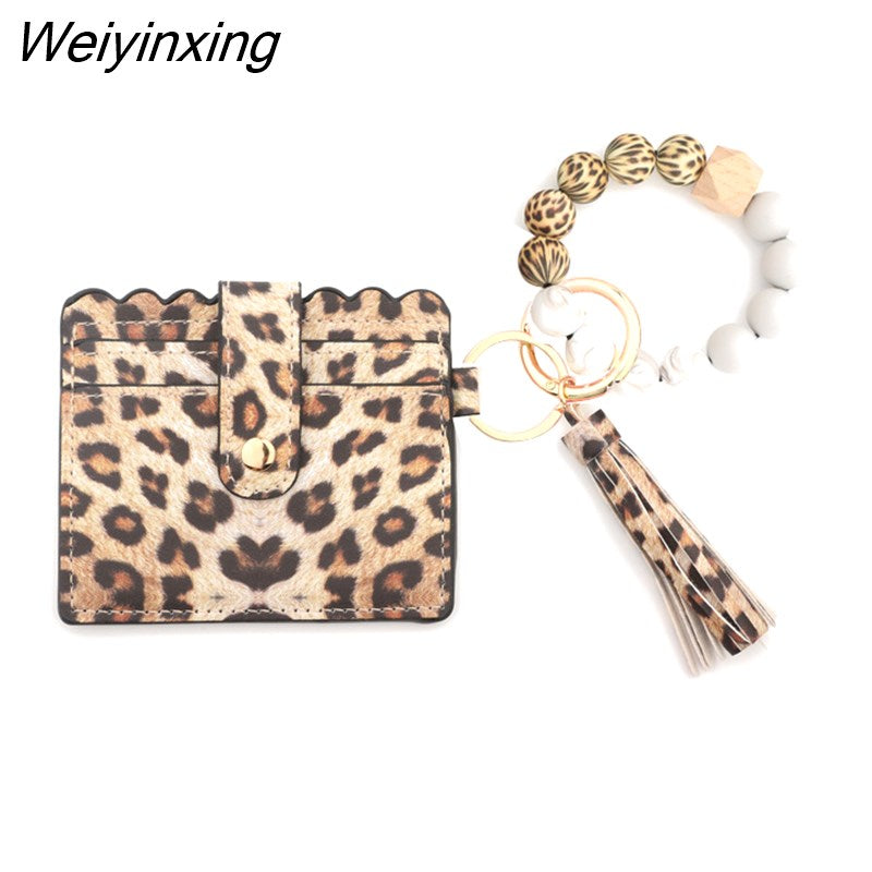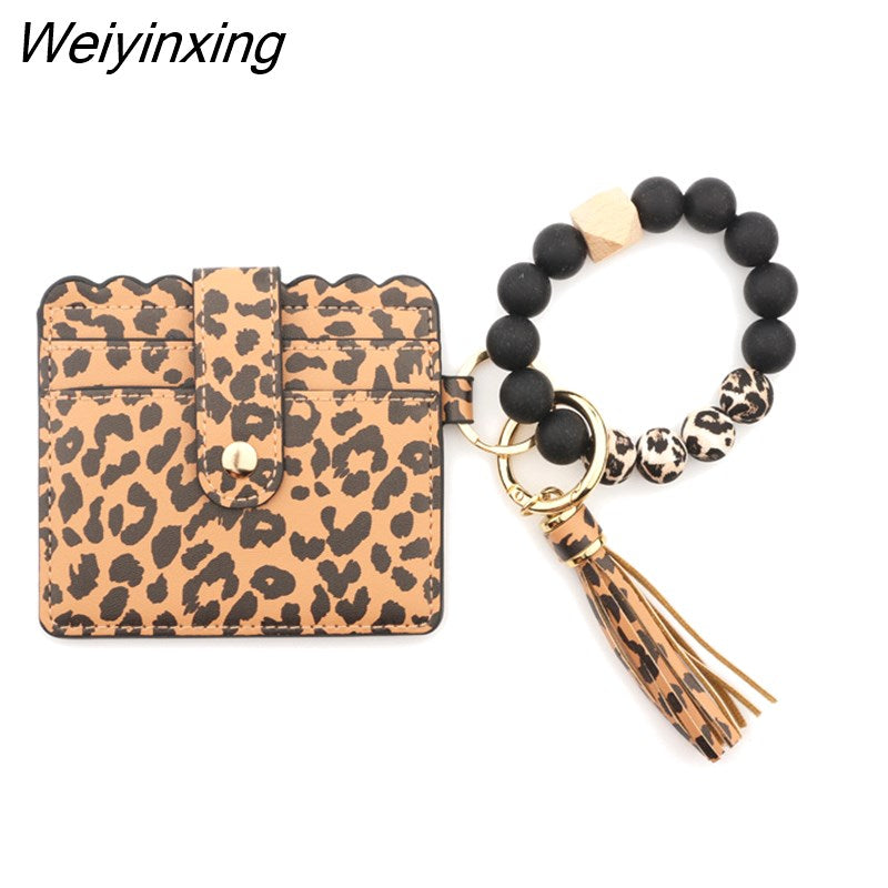 Weiyinxing Pc 8 Colors Fashion Women Bracelets Card Holder Leopard Female Business Card Case Wristband Key Chain for Men