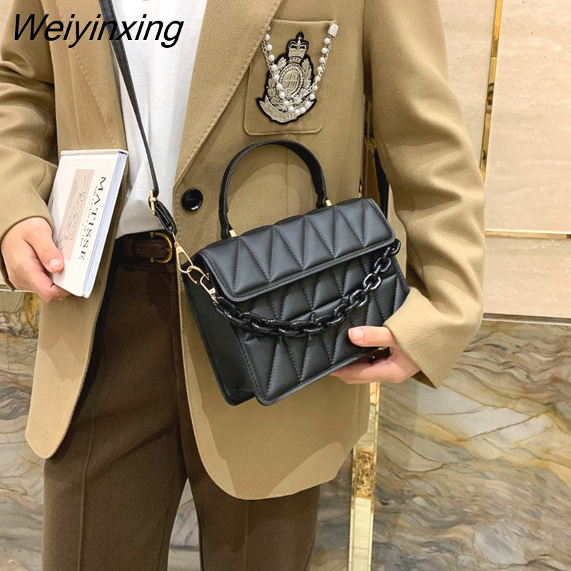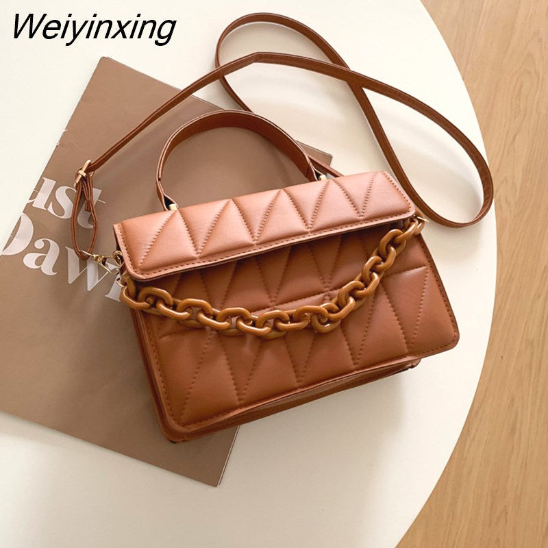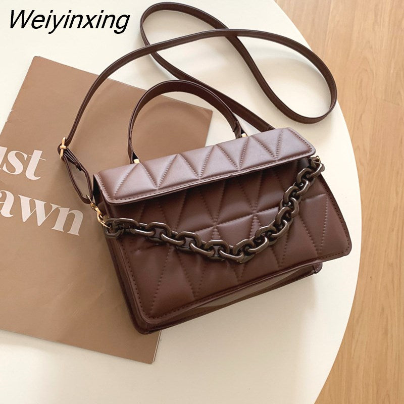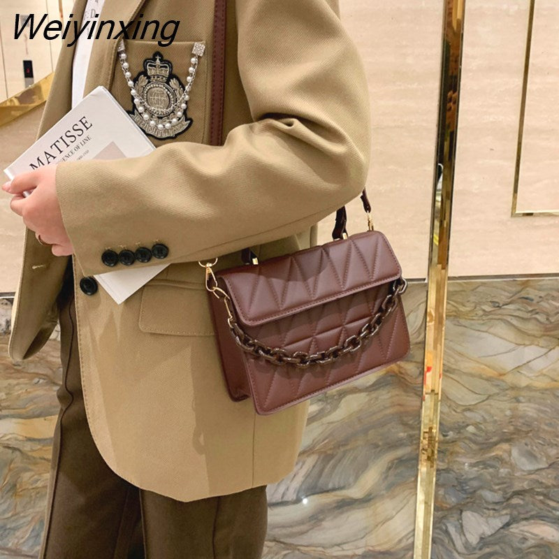 Weiyinxing Plaid Women Shoulder Bag Fashion Chain Crossbody Bags Brand Designer Handbags and Purses Small Flap Top Handle Bags