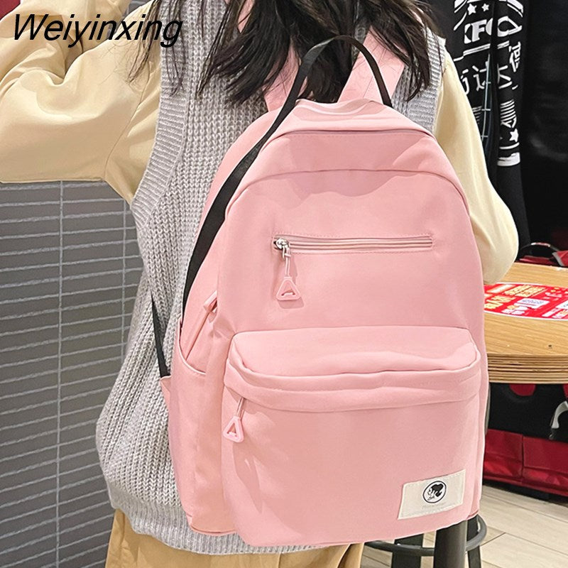 Weiyinxing Product Large Capacity Posh Student Backpack Korean Simple Style Solid Color Shoulder Bag Fashion Schoolgirl Bag Waterproof