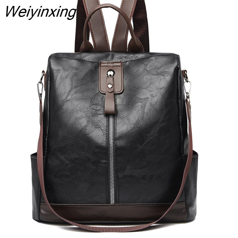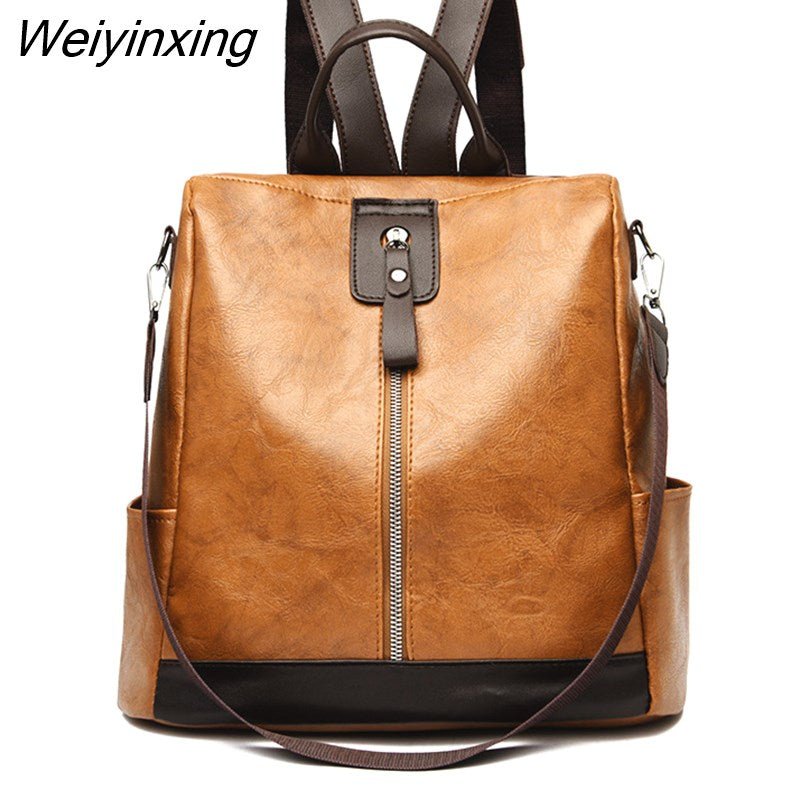 Weiyinxing PU Leather Backpack Women Big Capacity Travel Backpack Teenager School Bag Female Business Knapsack Luxury Bag