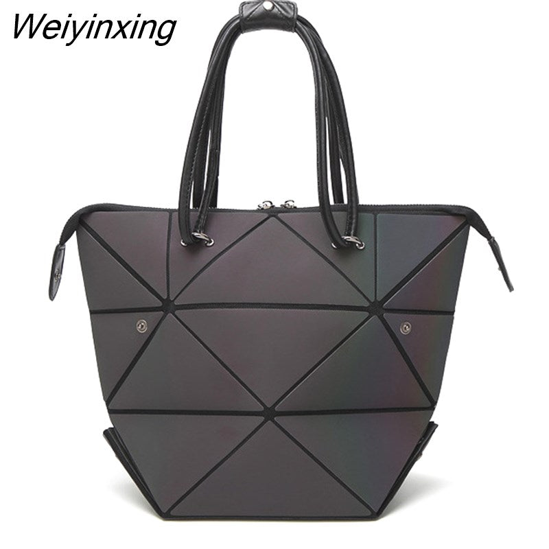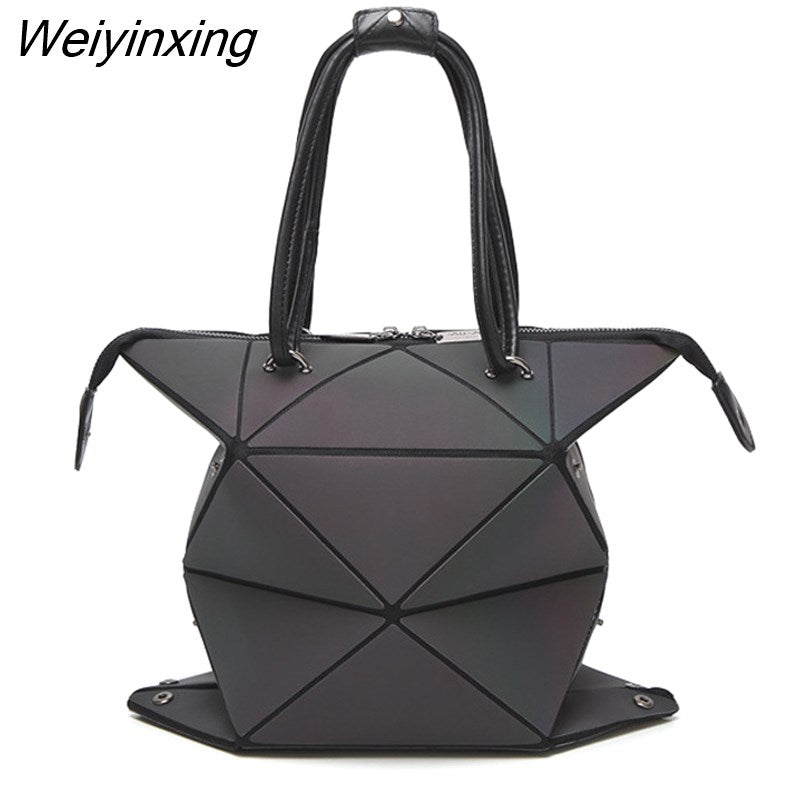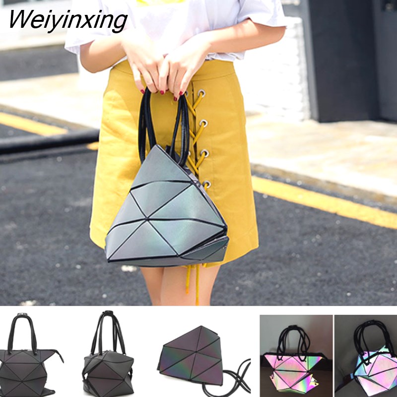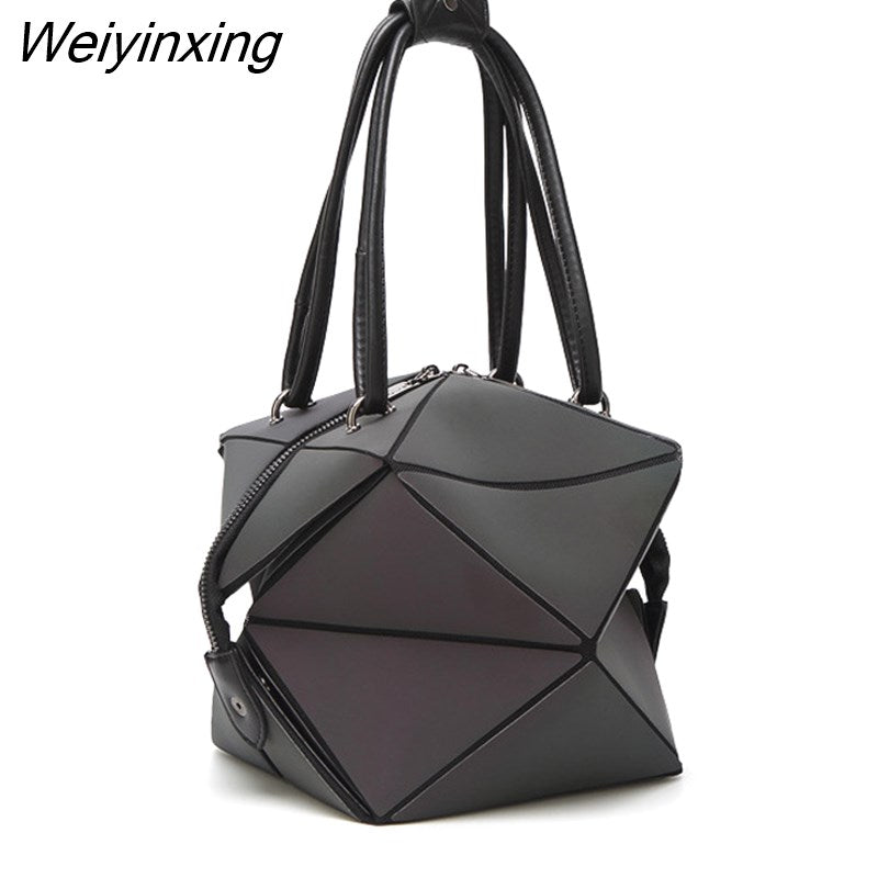 Weiyinxing PU Leather Luminous Handbags for Women 2023 High Quality Geometric Night Light Square Foldable Shoulder Bags