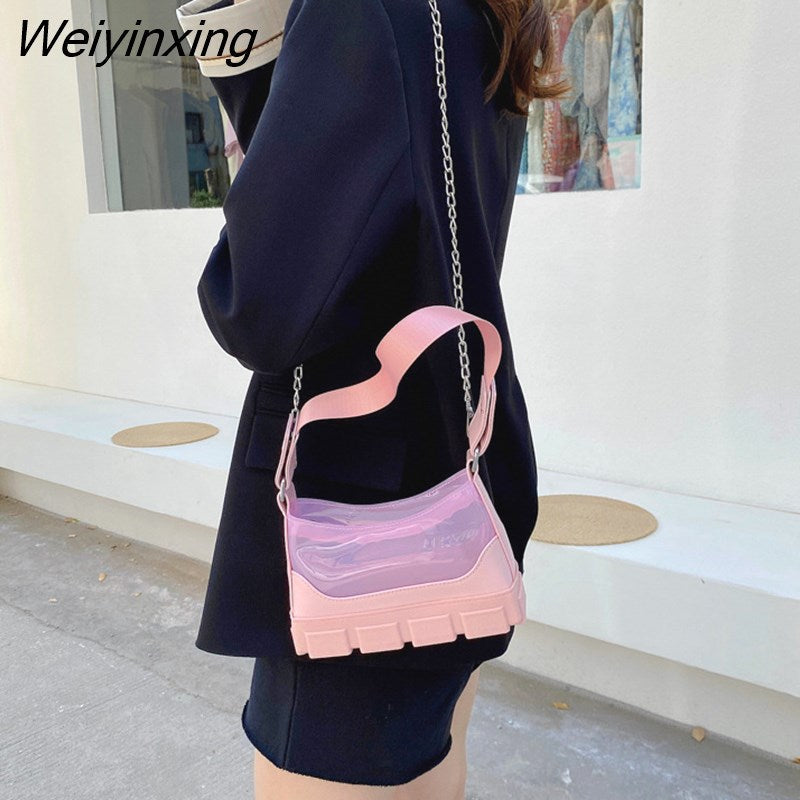 Weiyinxing PVC Summer Jelly Shoulder Bag for Women Handbags and Purses Clear Crossbody Bags Ladies Casual Bag