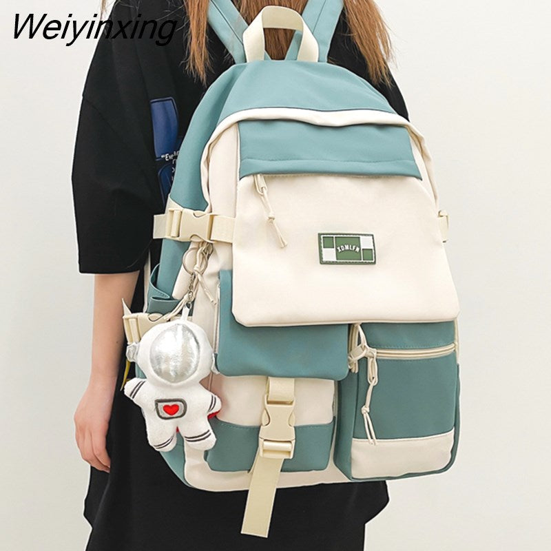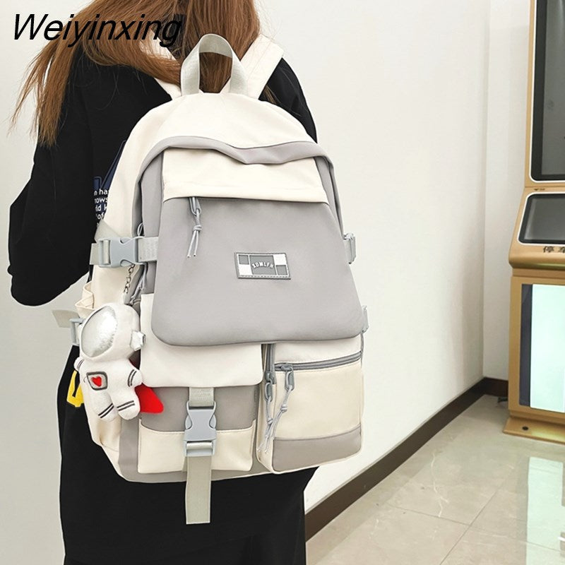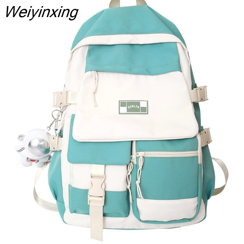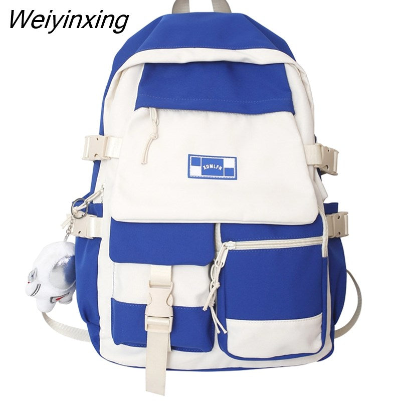 Weiyinxing Quality Multi Pocket Buckle Backpack Women Patchwork Waterproof Shoulder Bags Teenage Girls Laptop Backpack Cute School Bag