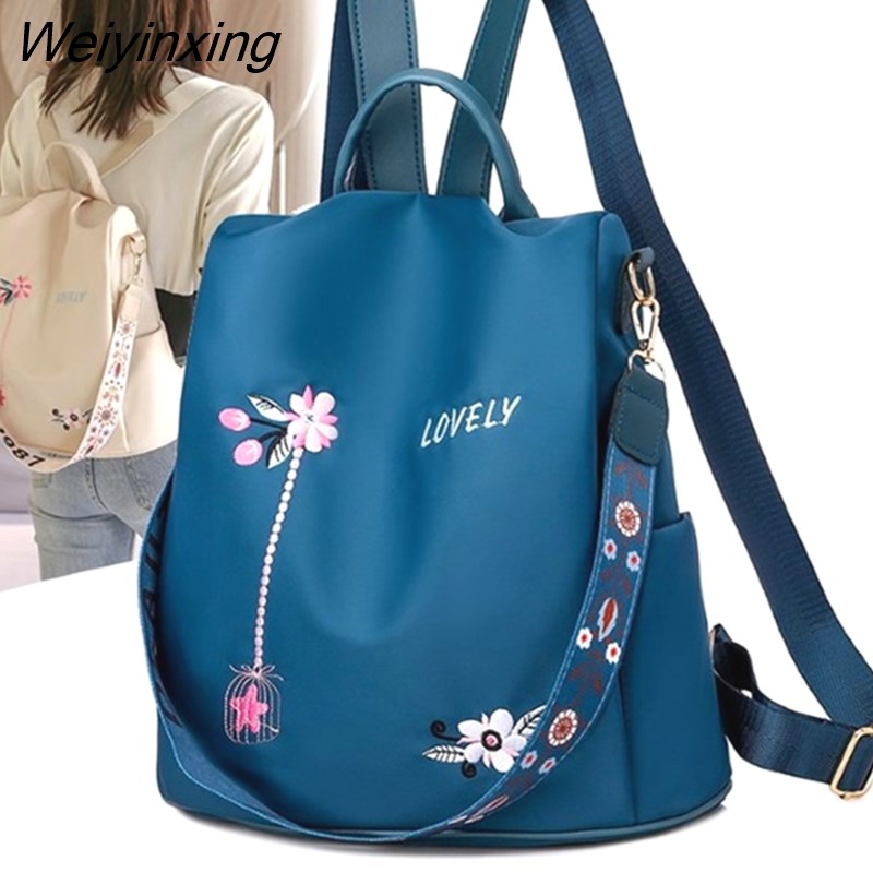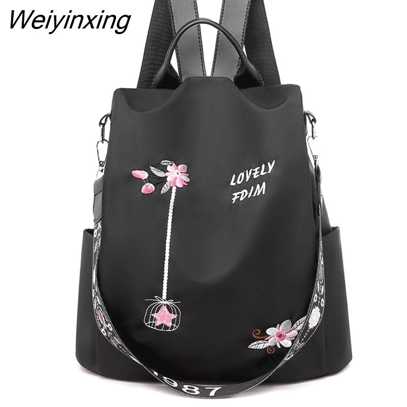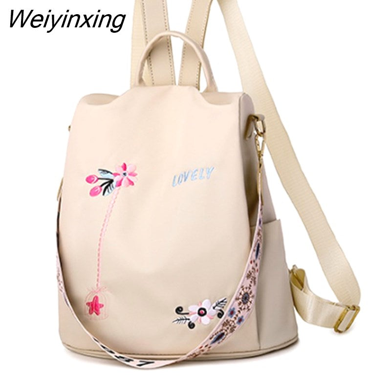 Weiyinxing Quality Oxford Women Backpack Elegant Floral Embroidery School Bags Waterproof Female Backpacks Teenage Girls