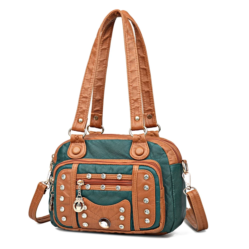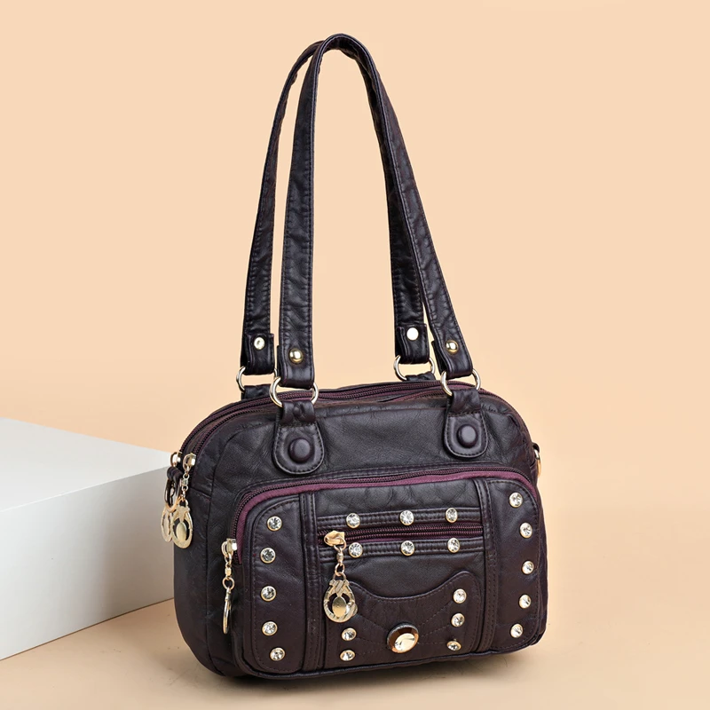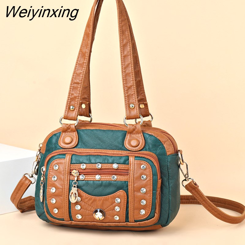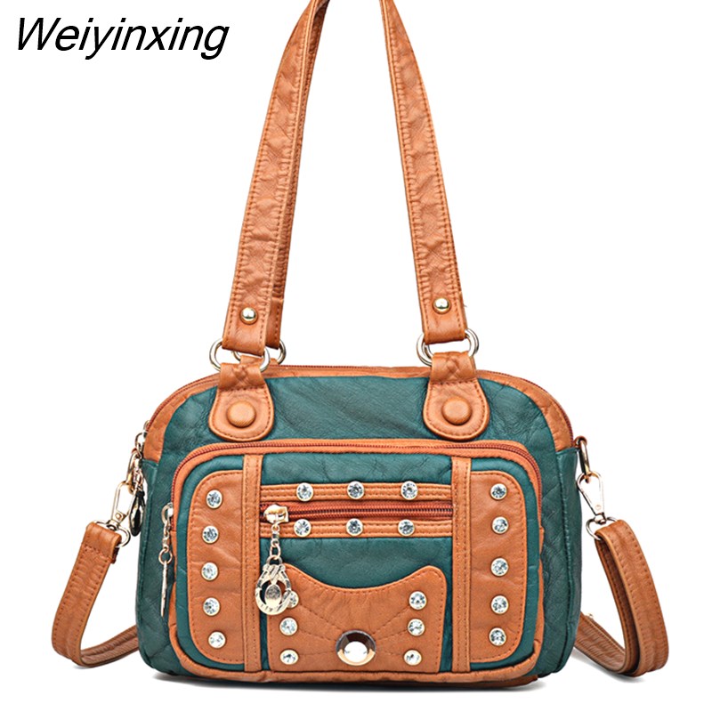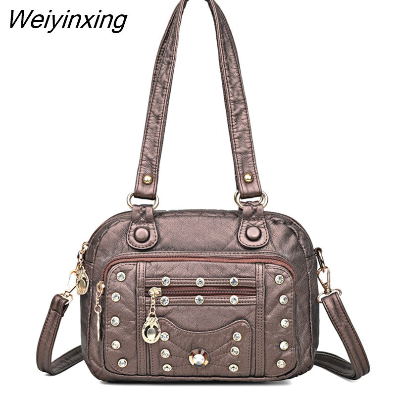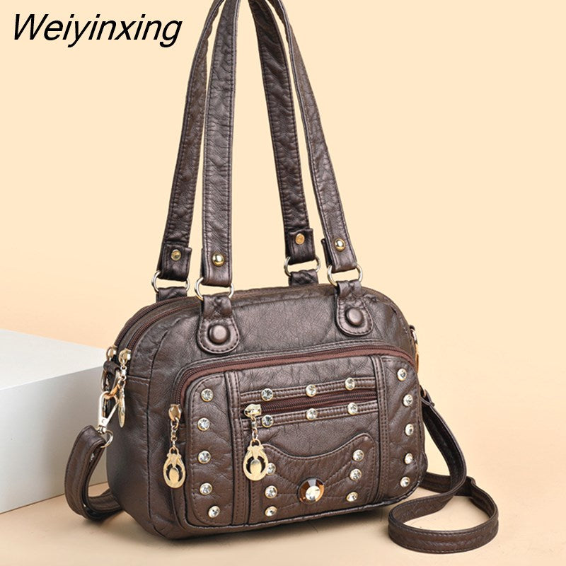 Weiyinxing Quality Soft Leather Multiple Pockets Women Handbags Luxury Small Female Shoulder Messenger Bags Designer Rivet Ladies Tote