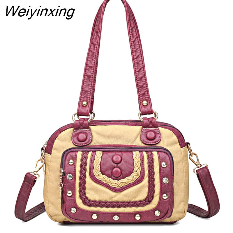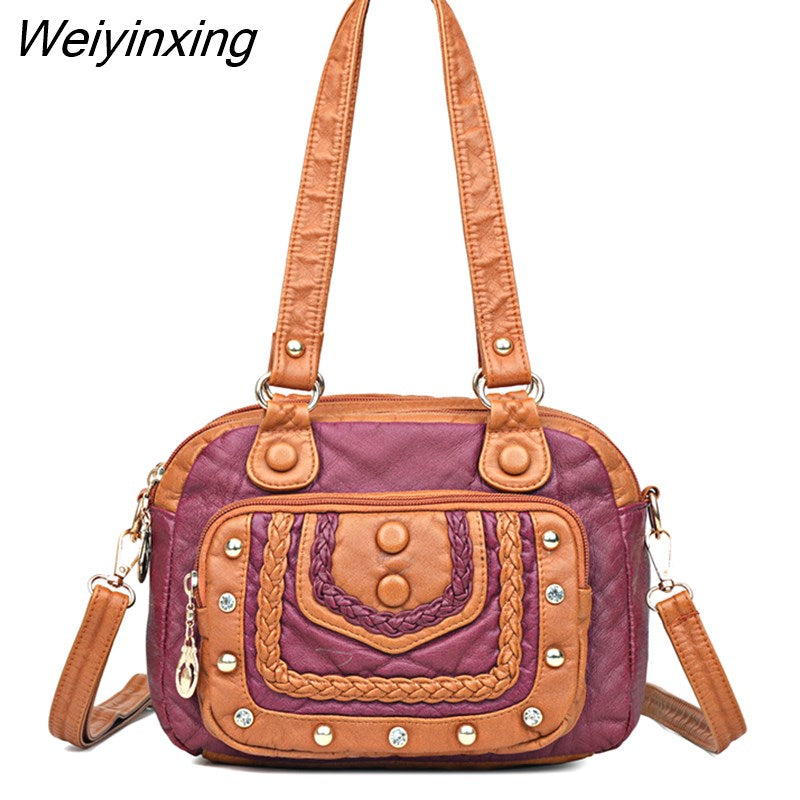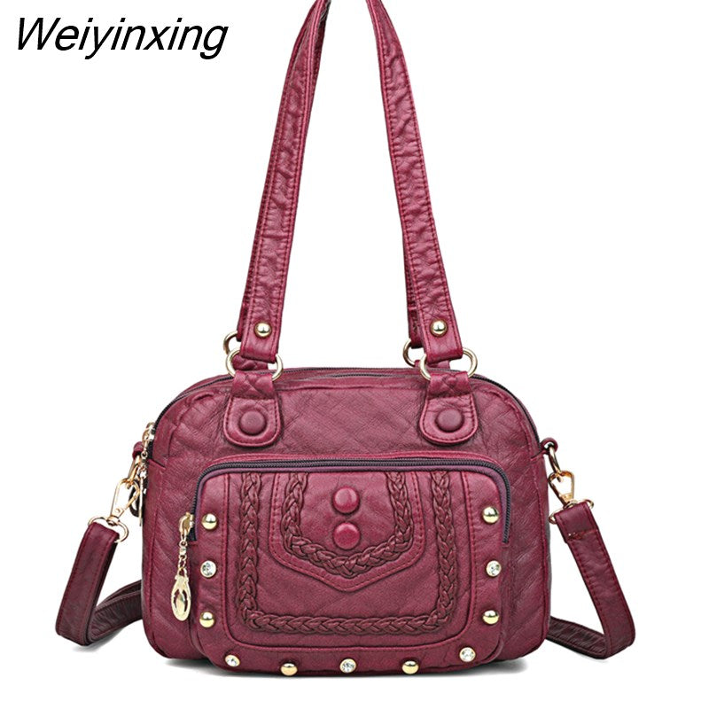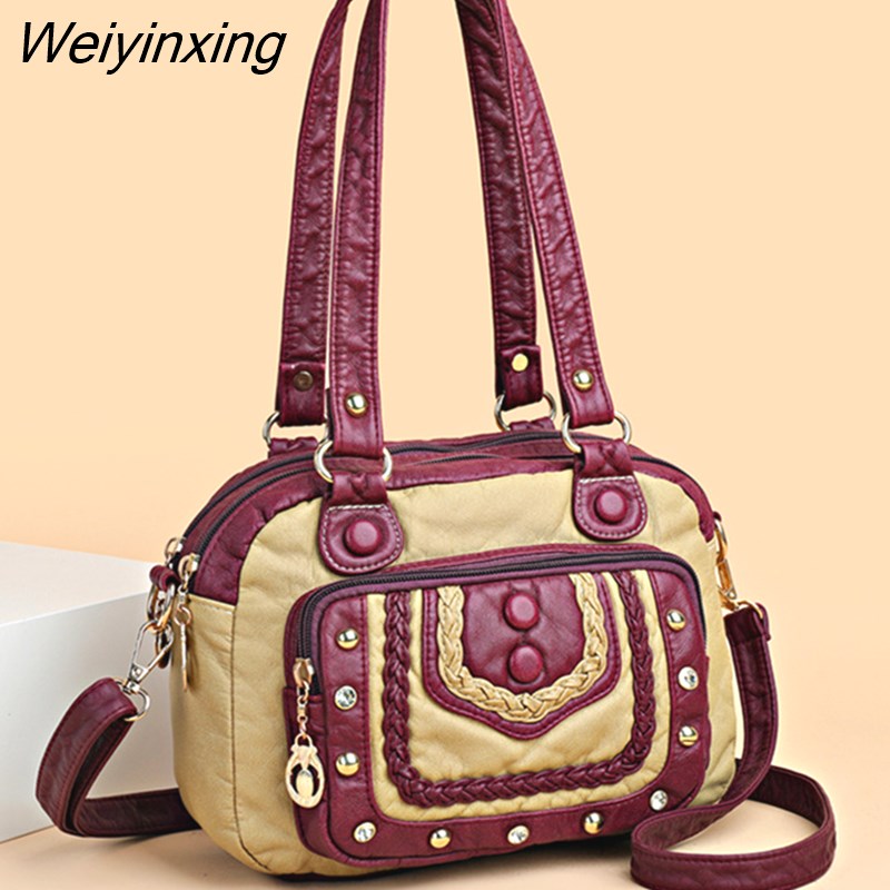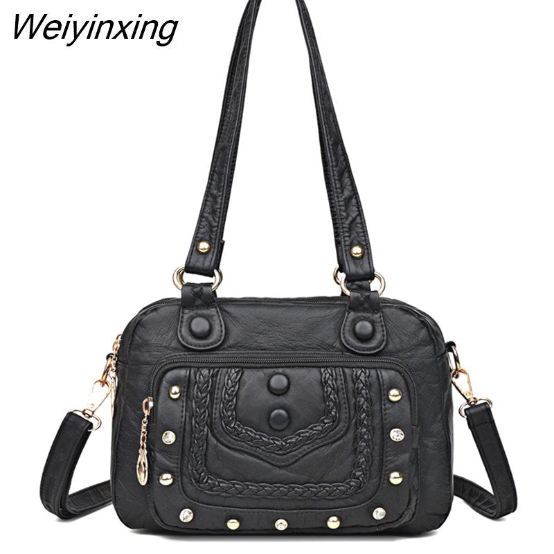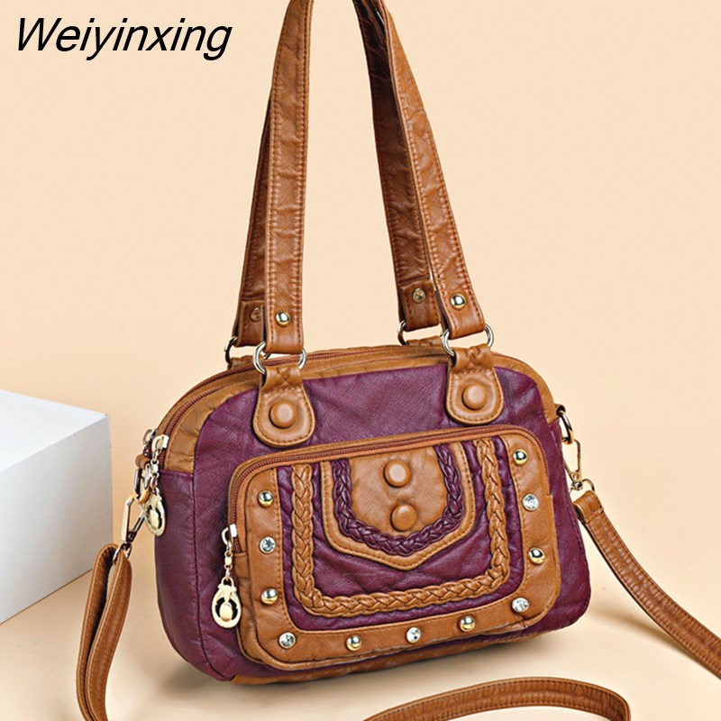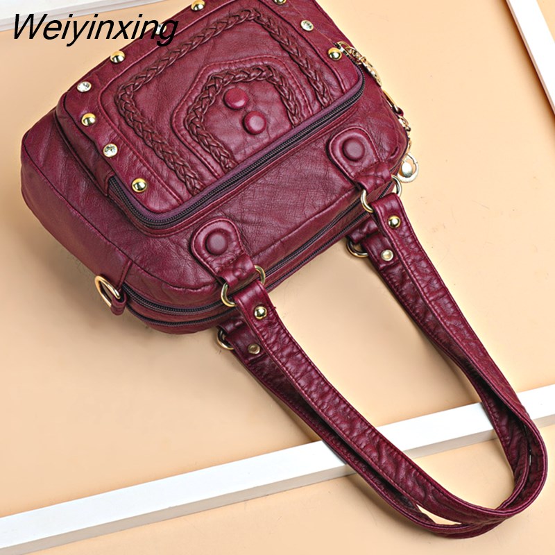 Weiyinxing Quality Soft Leather Women's Handbags Luxury Small Female Shoulder Bags Casual Ladies Tote Bag Designer Rivet Messenger Bag