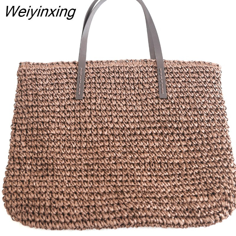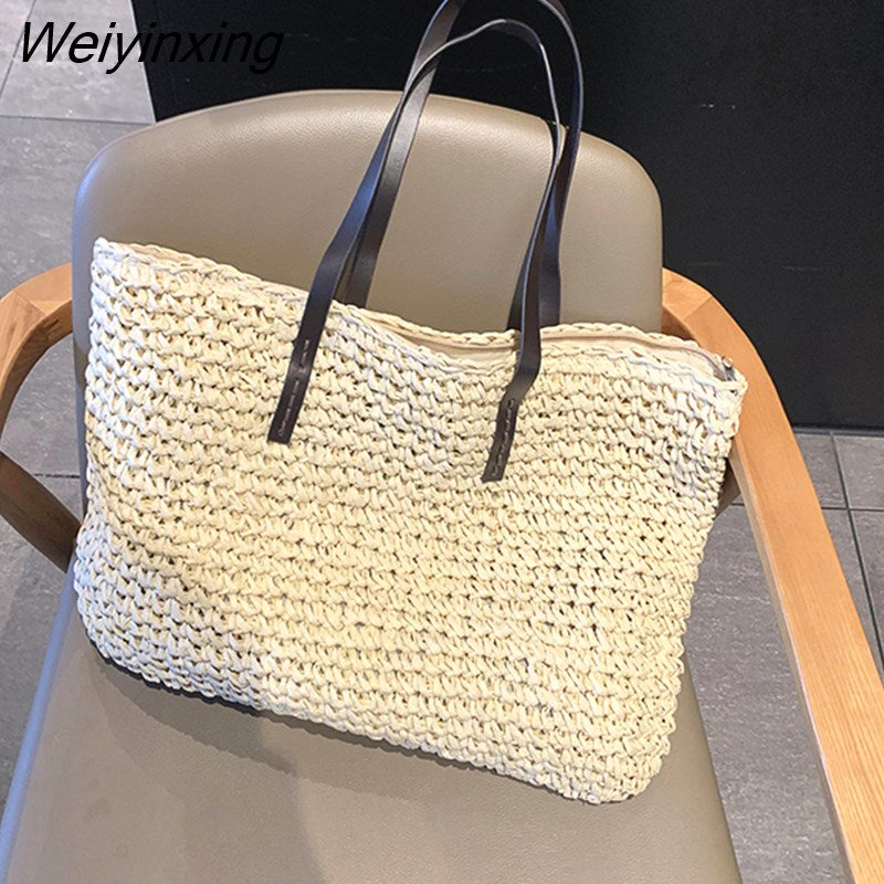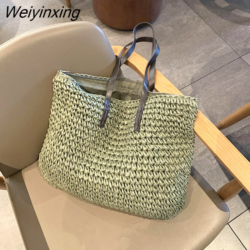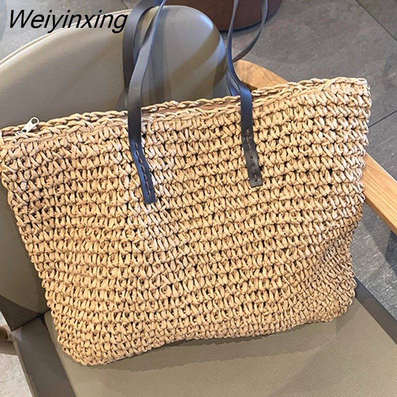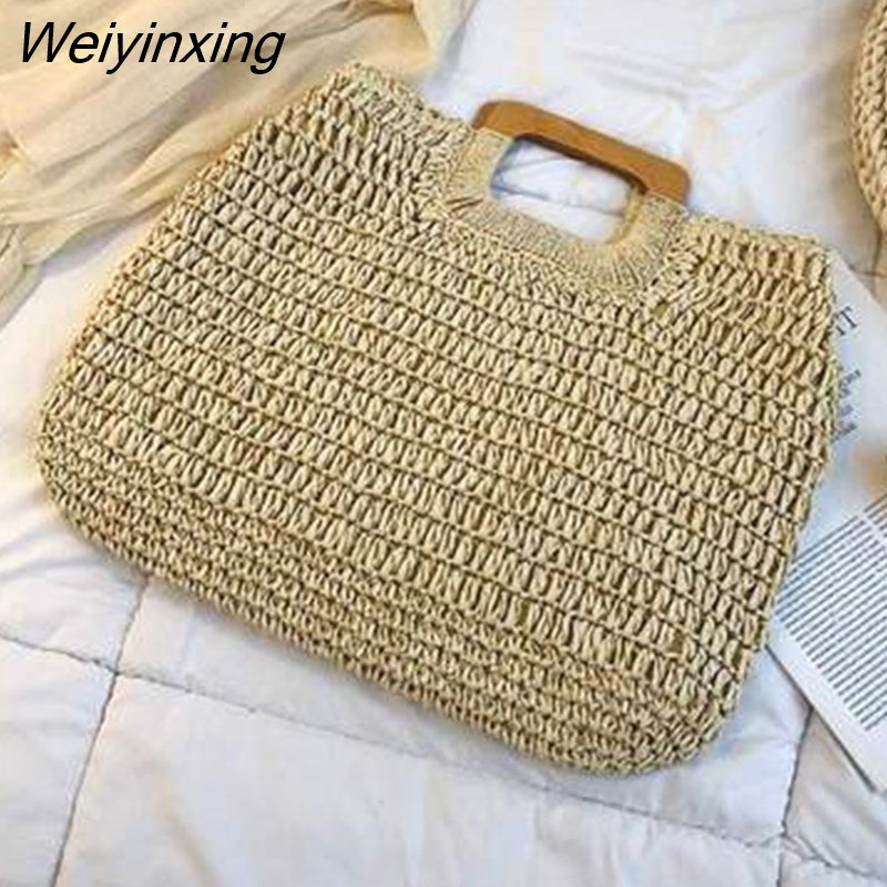 Weiyinxing rattan large capacity tote for women wicker woven wooden handbags summer beach straw bag lady big purses travel sac 2023