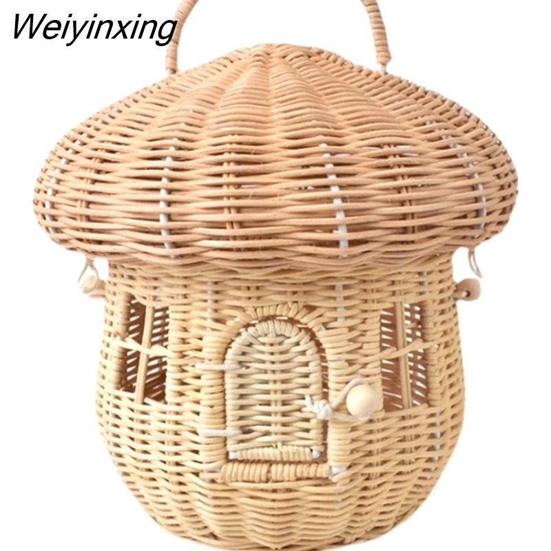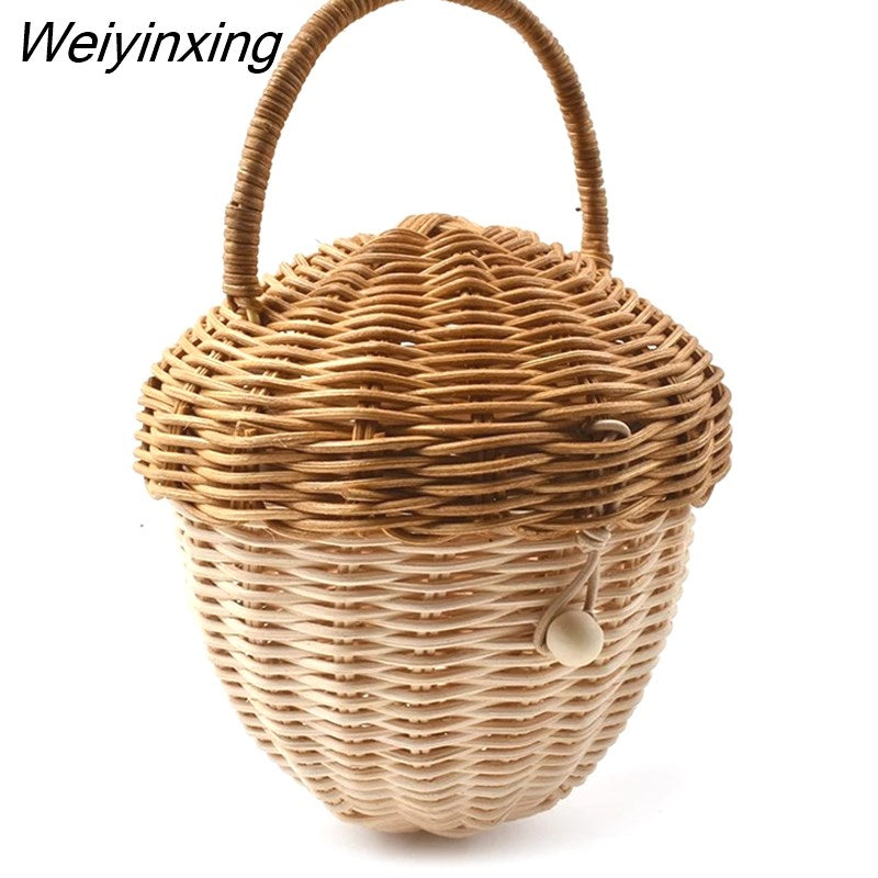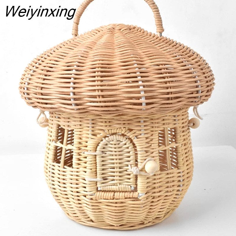 Weiyinxing Rattan Mushroom Basket Bag Designer Wicker Woven Women Handbags Lovely Summer Beach Straw Bag Bali Holiday Box Purses