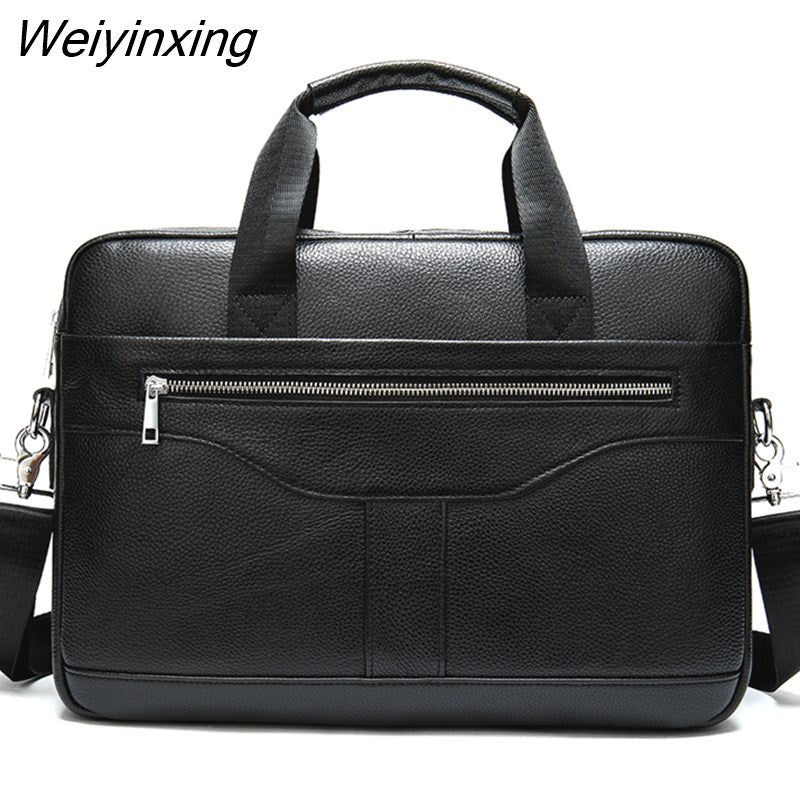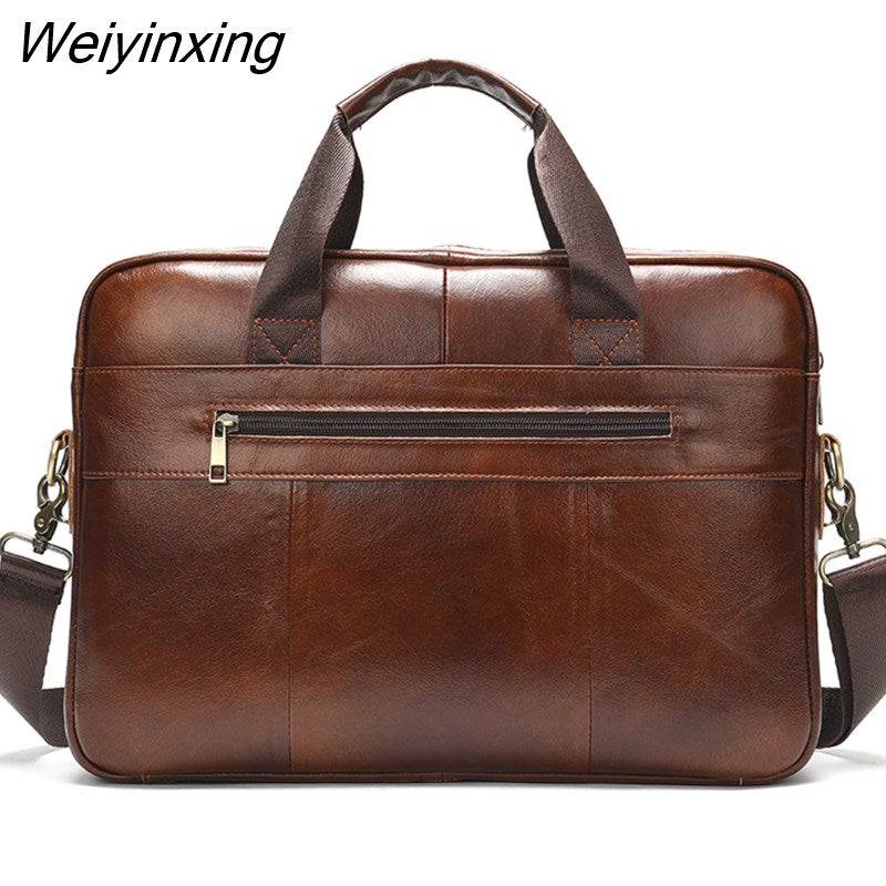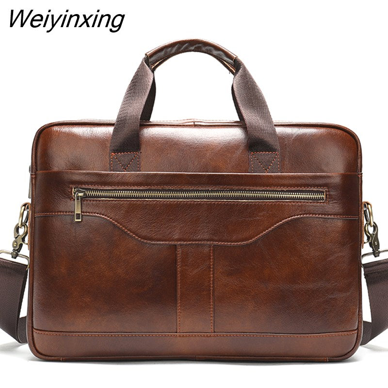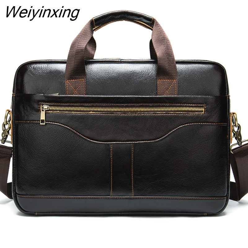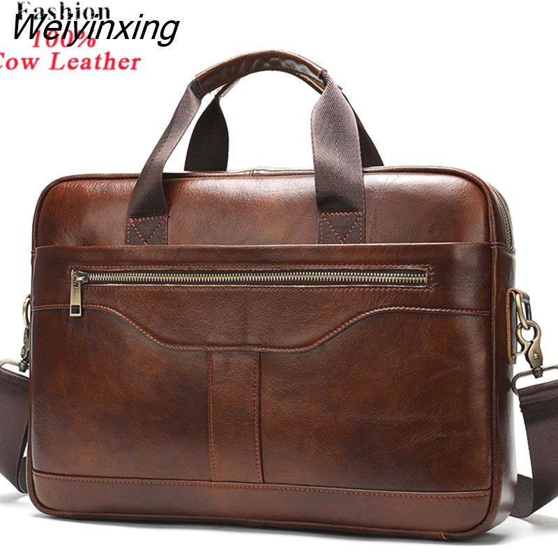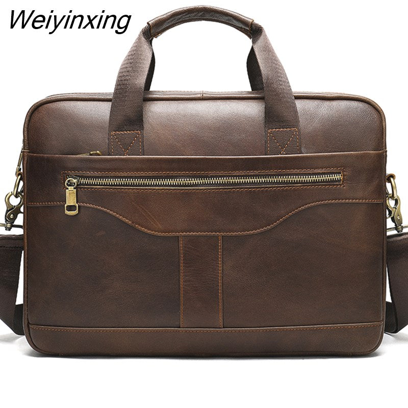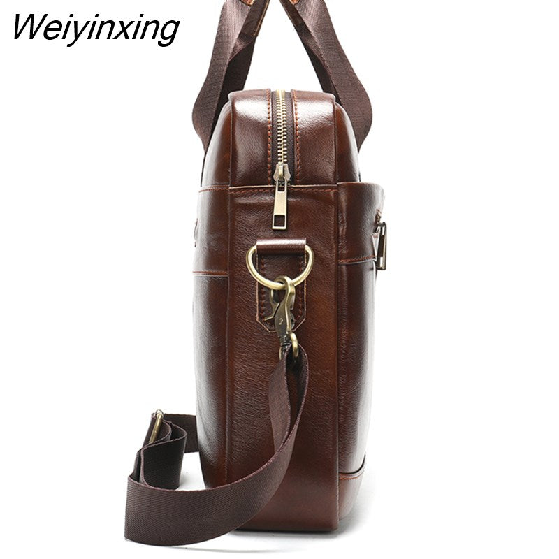 Weiyinxing Real Cowskin Men Computer Business Shoulder Bags Retro Solid Travel Laptop Briefcase High Quality Vintage Leisure Handbags