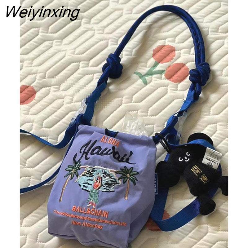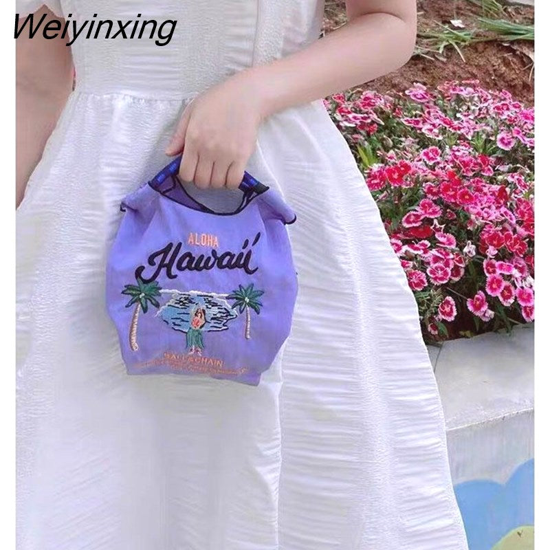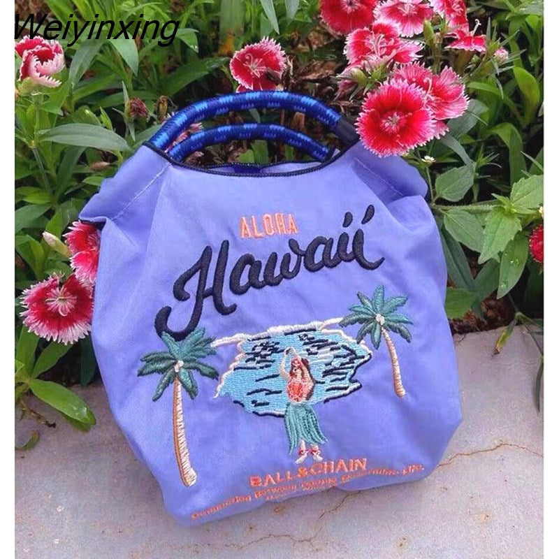 Weiyinxing Retro Hawaiian Vacation Embroidered Eco-friendly Mini Mini Bag Cartoon Tote Bag Nylon Pouch Bags for Women Tote Bag