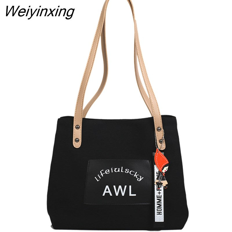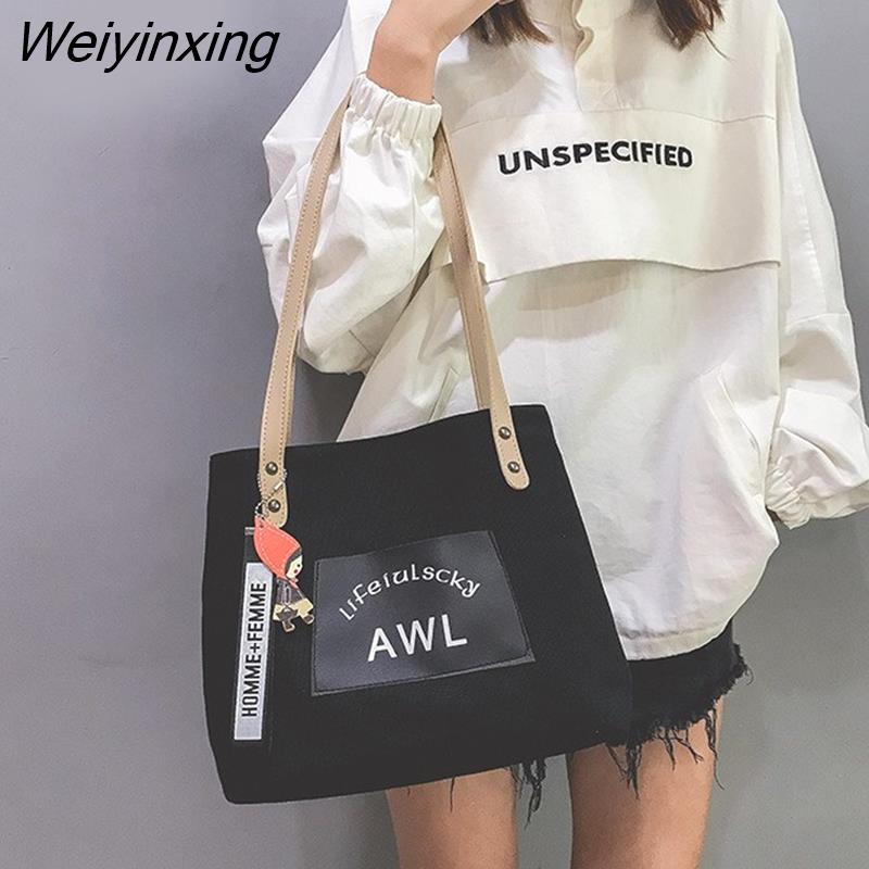 Weiyinxing Retro Women Shopping Bag Female Canvas Cloth Shoulder Bag Storage Handbag Reusable school bags for girl tote bags