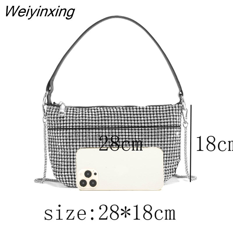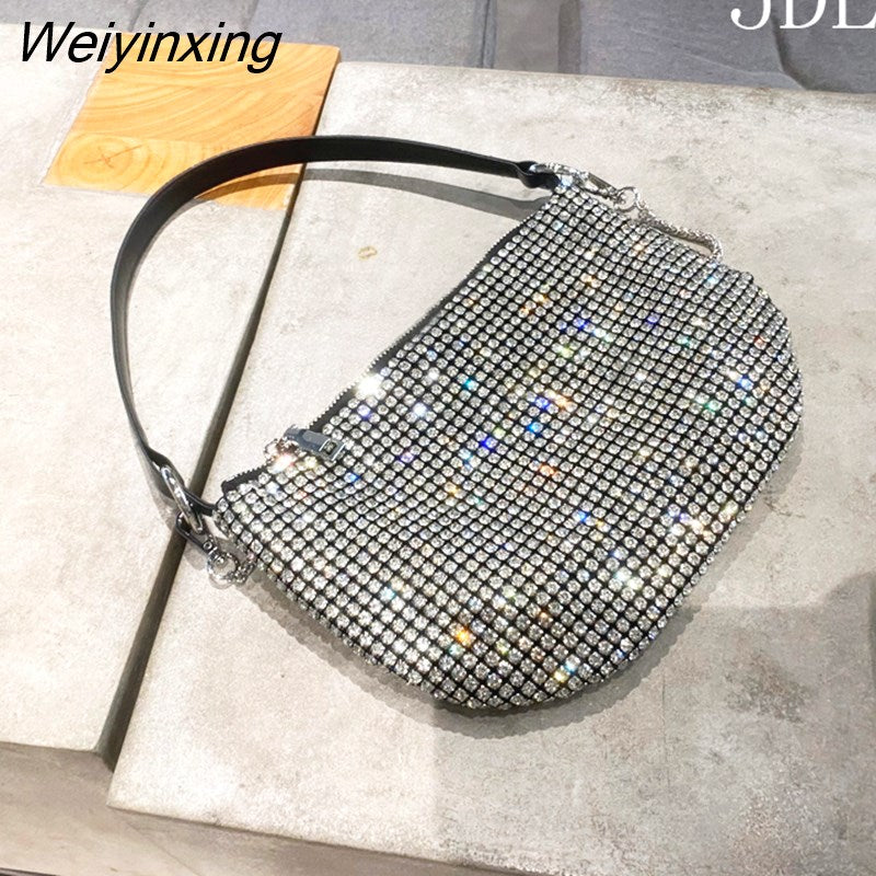 Weiyinxing Rhinestones Evening bag silver Crystal Bling Semi-Circular Top Handle Bags for Women Purses and Handbags Luxury Designer