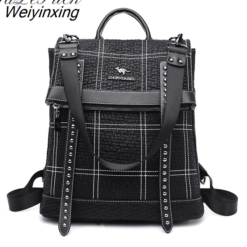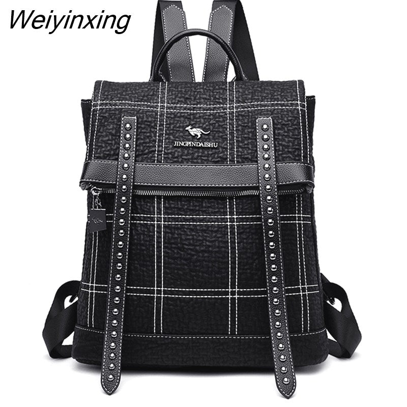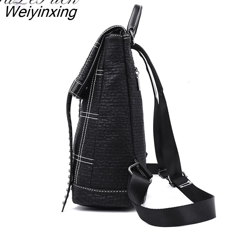 Weiyinxing Rivet belt backpack women sheepskin leather backpack school bags for teenage girls waterproof high capacity travel backpacks