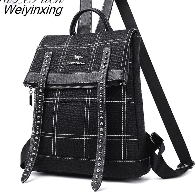 Weiyinxing Rivet belt backpack women sheepskin leather backpack school bags for teenage girls waterproof high capacity travel backpacks